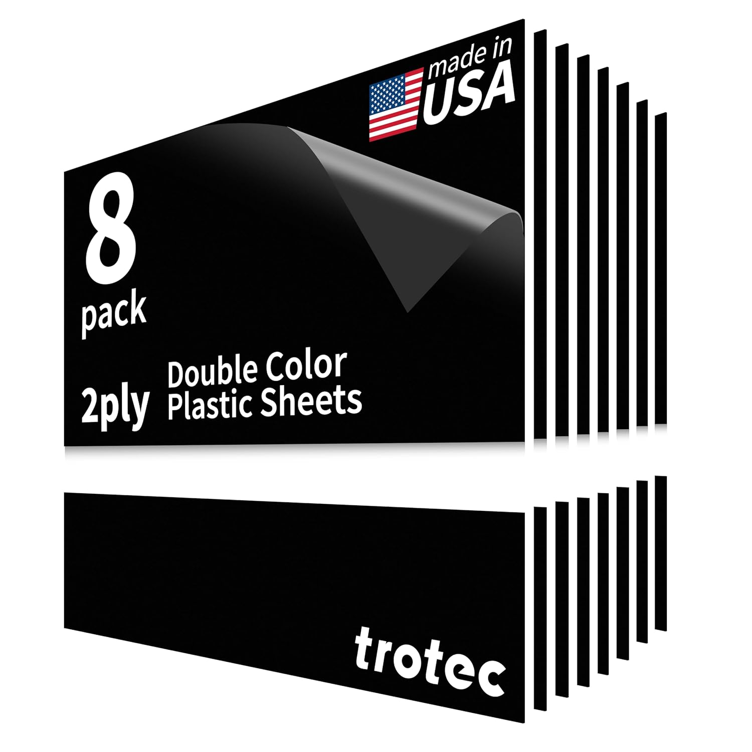 Trotec TroLase | 12"x12"x1/8", 8 Pcs | Black/White | 2 Ply | Modified Acrylic | Laser Engraving Double Color Plastic Sheet | Engraving Blanks for Laser, Saw, Guillotine | Made in USA