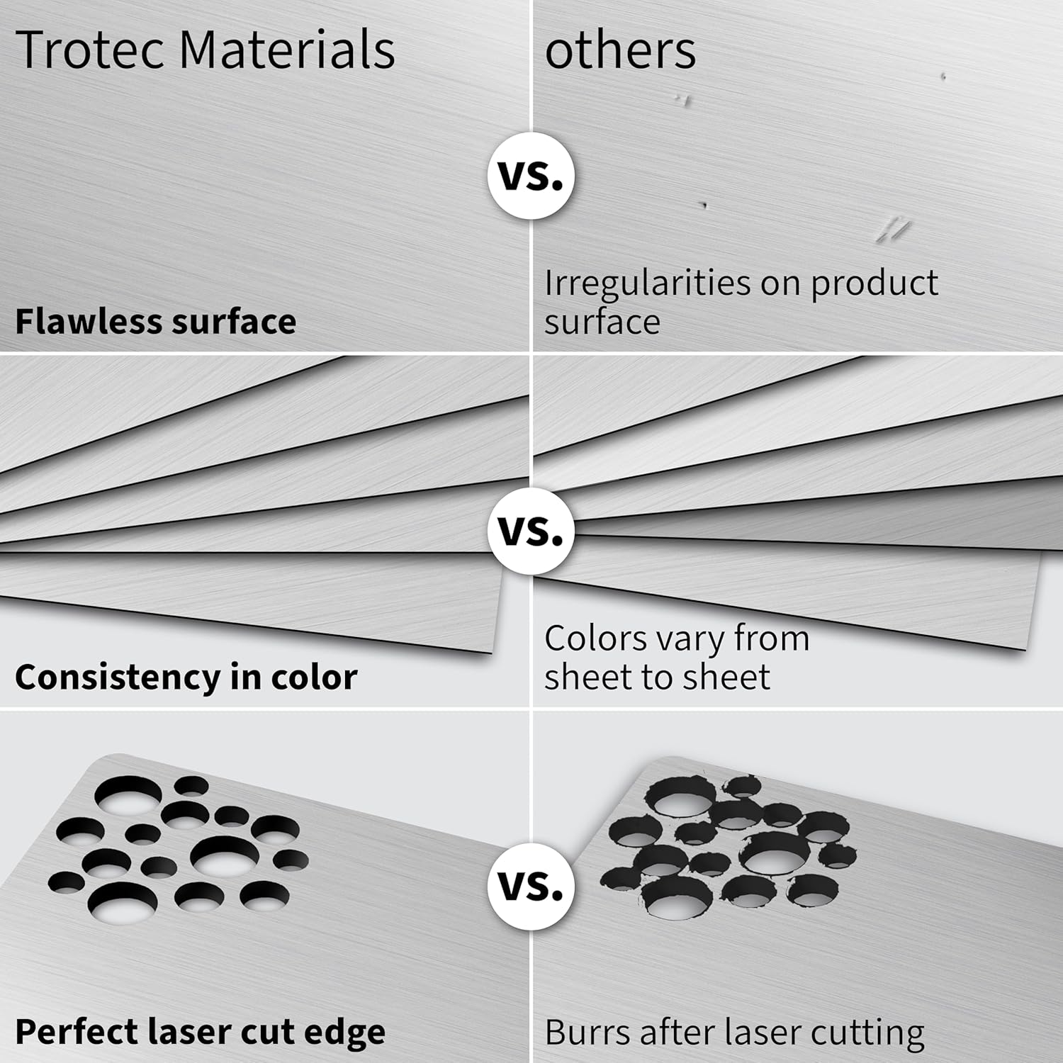 Trotec | Metallic Looking Acrylic Sheet | 12"x20"x1/8", 4 Pcs | Brushed Aluminum/Black | Metallic Finish - Scratch Resistant for Laser Engraving & Cutting,Printing,Glowforge,Name Plate | USA Made