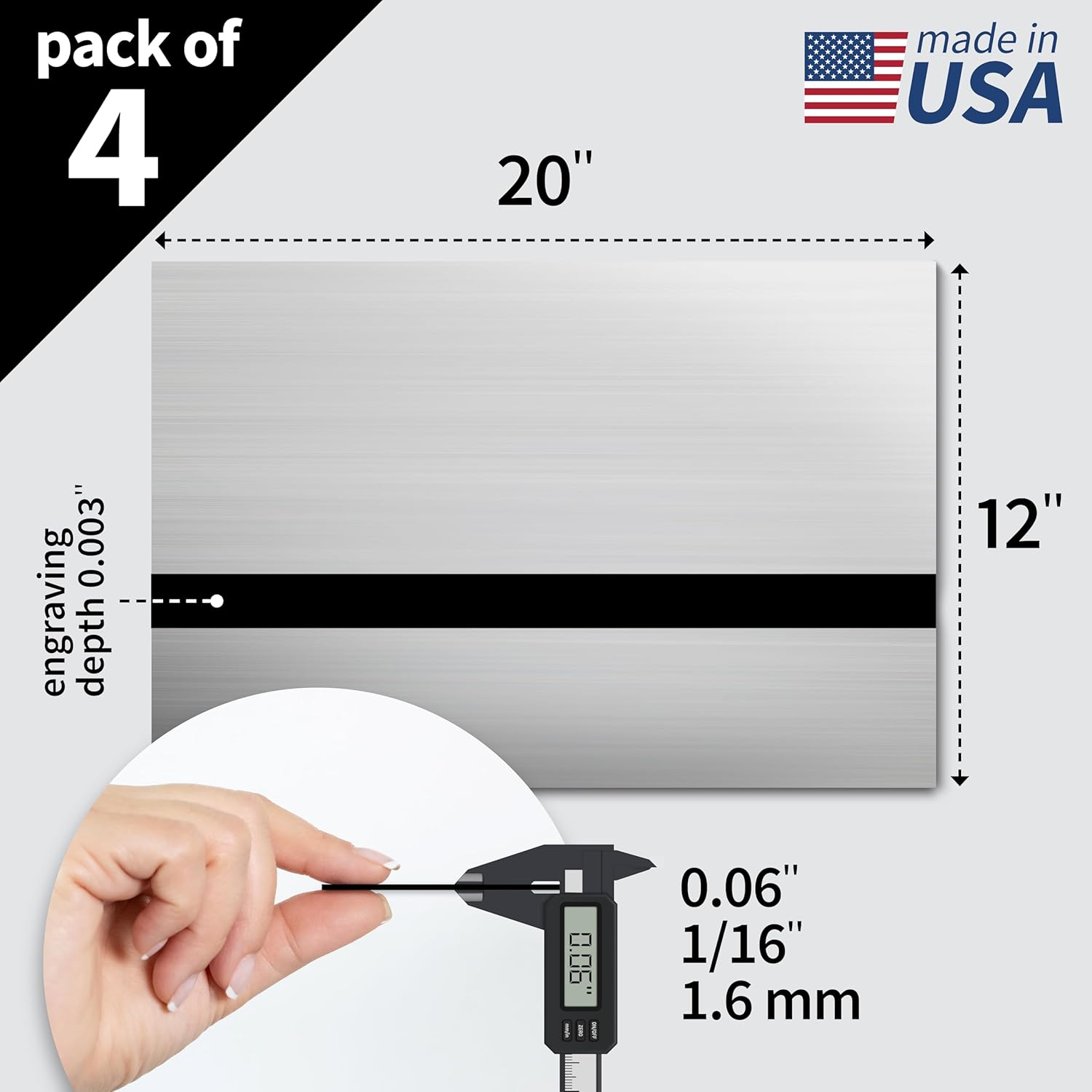 Trotec | Metallic Looking Acrylic Sheet | 12"x20"x1/16, 4 Pcs | Brushed Silver/Black | Metallic Finish - Scratch Resistant for Laser Engraving & Cutting,Printing,Glowforge,Name Plate | USA Made