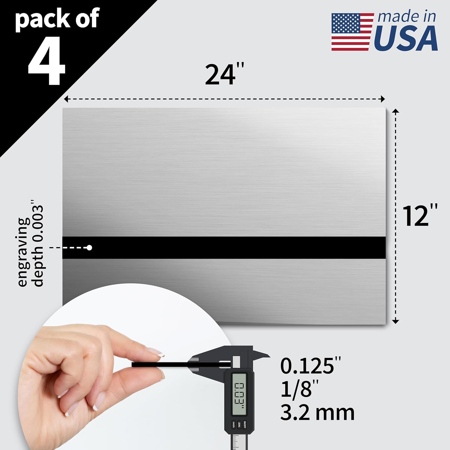 Trotec | Metallic Looking Acrylic Sheet | 12"x24"x1/8", 4 Pcs | Brushed Aluminum/Black | Metallic Finish - Scratch Resistant for Laser Engraving & Cutting,Printing,Glowforge,Name Plate | USA Made