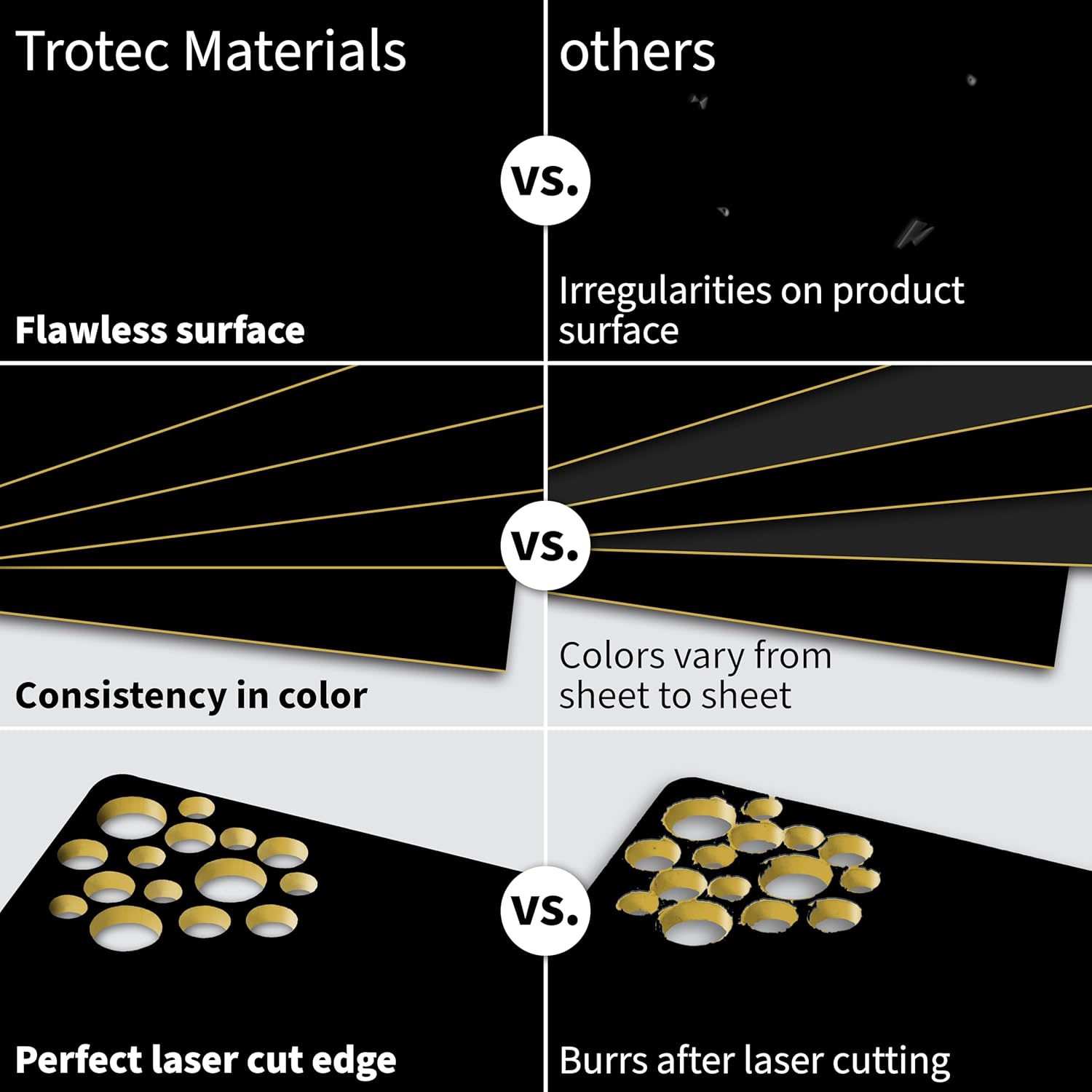Trotec TroLase | 12"x12"x1/16, 8 Pcs | Gloss Black/Gold | 2 Ply | Modified Acrylic | Laser Engraving Double Color Plastic Sheet | Engraving Blanks for Laser, Saw, Guillotine | Made in USA