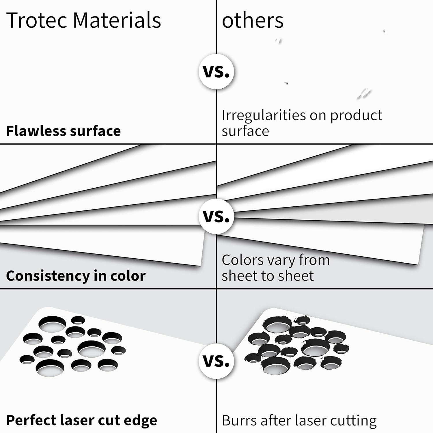 Trotec TroLase | 12"x12"x1/8", 8 Pcs | White/Black/White | 3 Ply | Modified Acrylic | Laser Engraving Double Color Plastic Sheet | Engraving Blanks for Laser, Saw, Guillotine | Made in USA