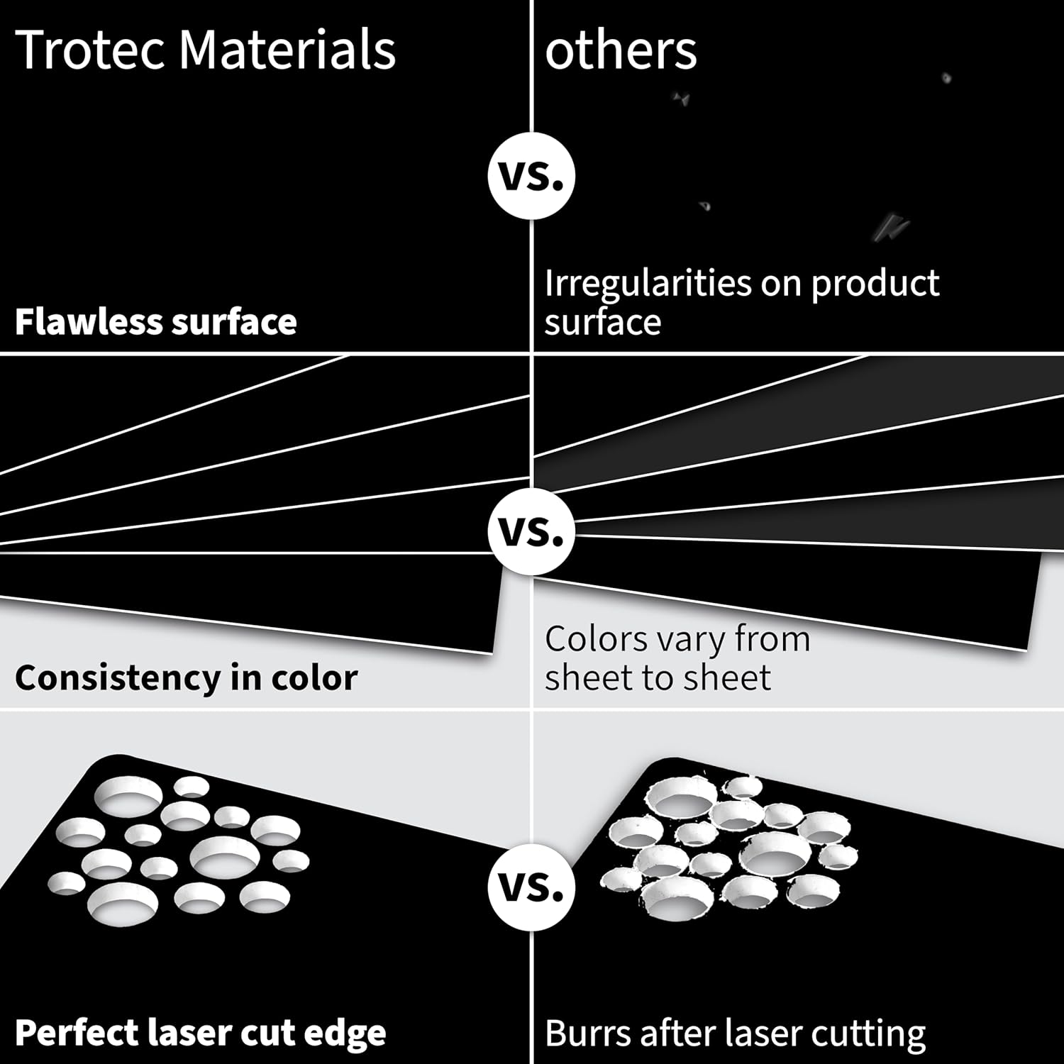 Trotec TroLase | 12"x24"x1/32", 4 Pcs | Black/White | 2 Ply | Modified Acrylic | Laser Engraving Double Color Plastic Sheet | Engraving Blanks for Laser, Saw, Guillotine | Made in USA