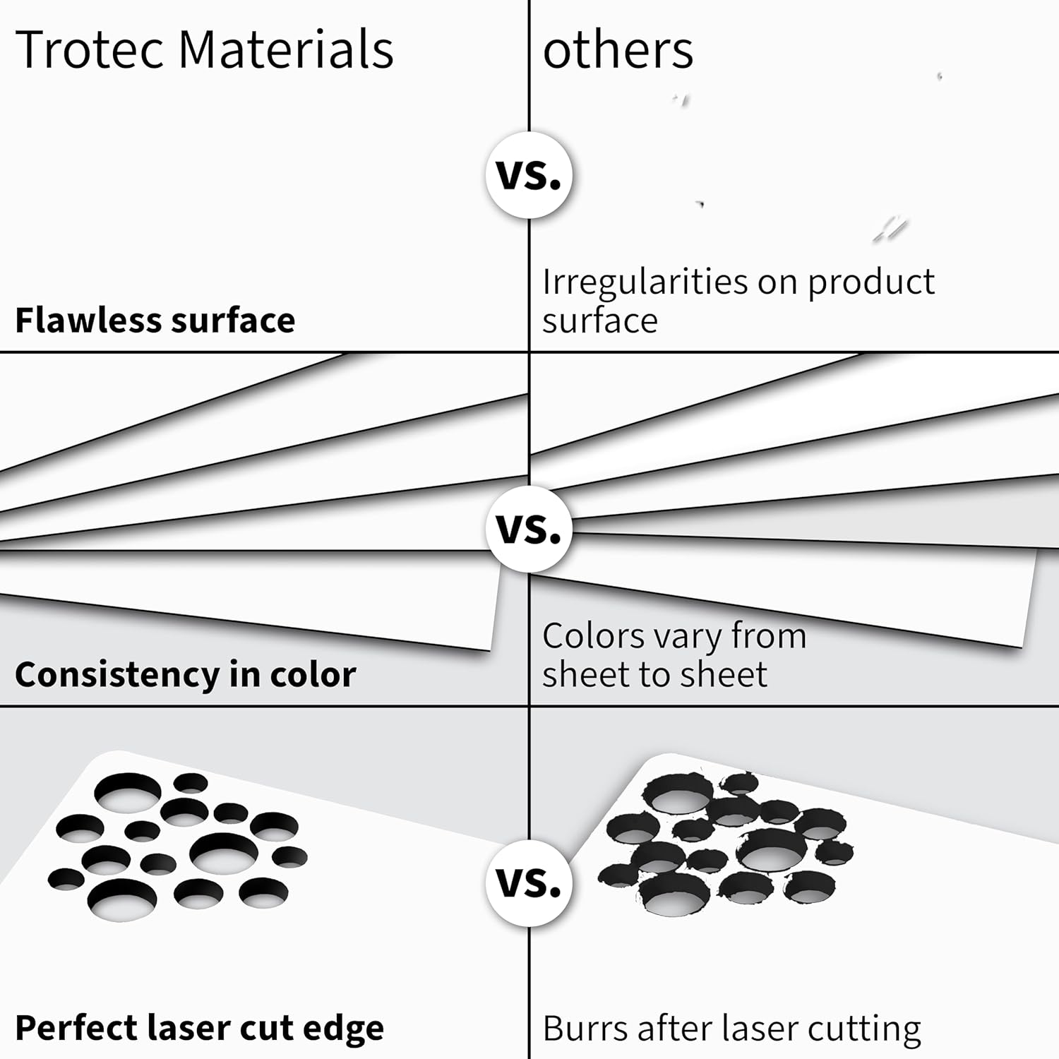 Trotec TroLase | 12"x24"x1/32", 4 Pcs | White/Black | 2 Ply | Modified Acrylic | Laser Engraving Double Color Plastic Sheet | Engraving Blanks for Laser, Saw, Guillotine | Made in USA