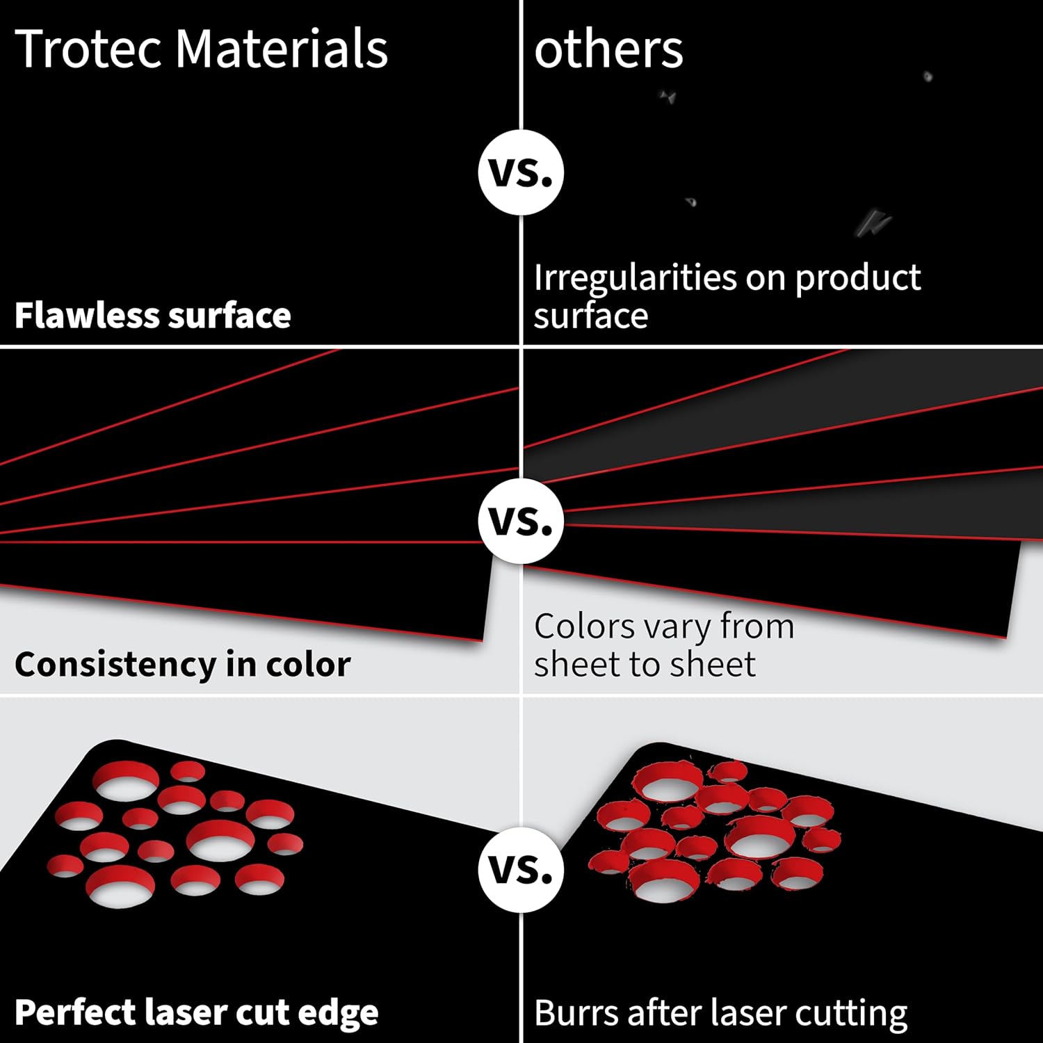 Trotec TroLase | 12"x12"x1/16", 8 Pcs | Black/Red| 2 Ply | Modified Acrylic | Laser Engraving Double Color Plastic Sheet | Engraving Blanks for Laser, Saw, Guillotine | Made in USA