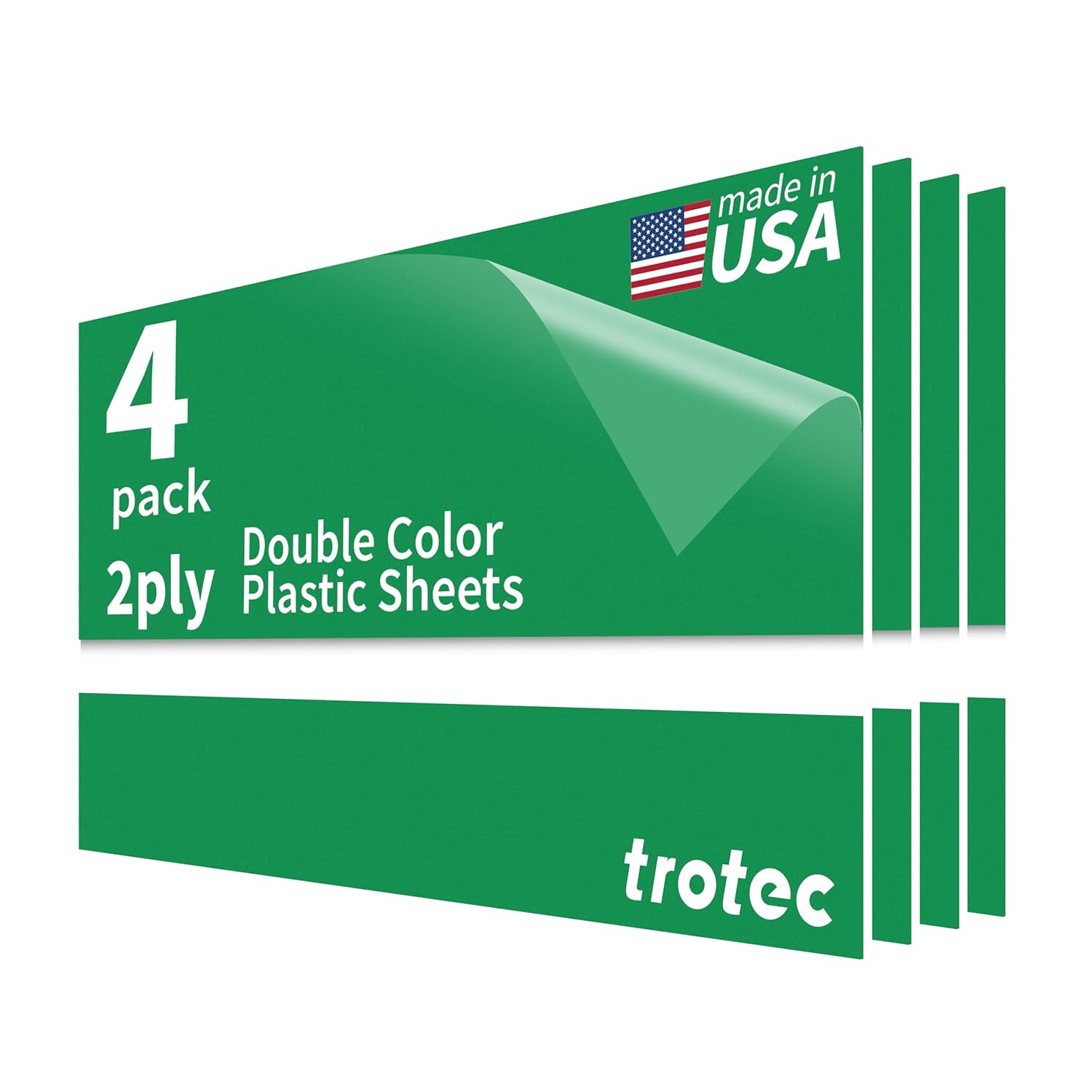 Trotec TroLase | 12"x24"x1/16", 4 Pcs | Bright Green/White | 2 Ply | Modified Acrylic | Laser Engraving Double Color Plastic Sheet | Engraving Blanks for Laser, Saw, Guillotine | Made in USA