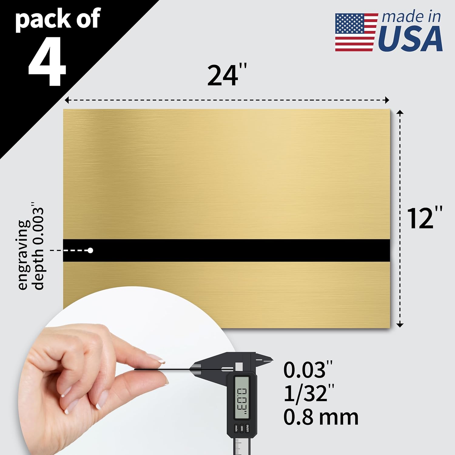Trotec | Metallic Looking Acrylic Sheet | 12"x24"x1/32, 4 Pcs | Brushed Gold/Black | Metallic Finish - Scratch Resistant for Laser Engraving & Cutting,Printing,Glowforge,Name Plate | USA Made