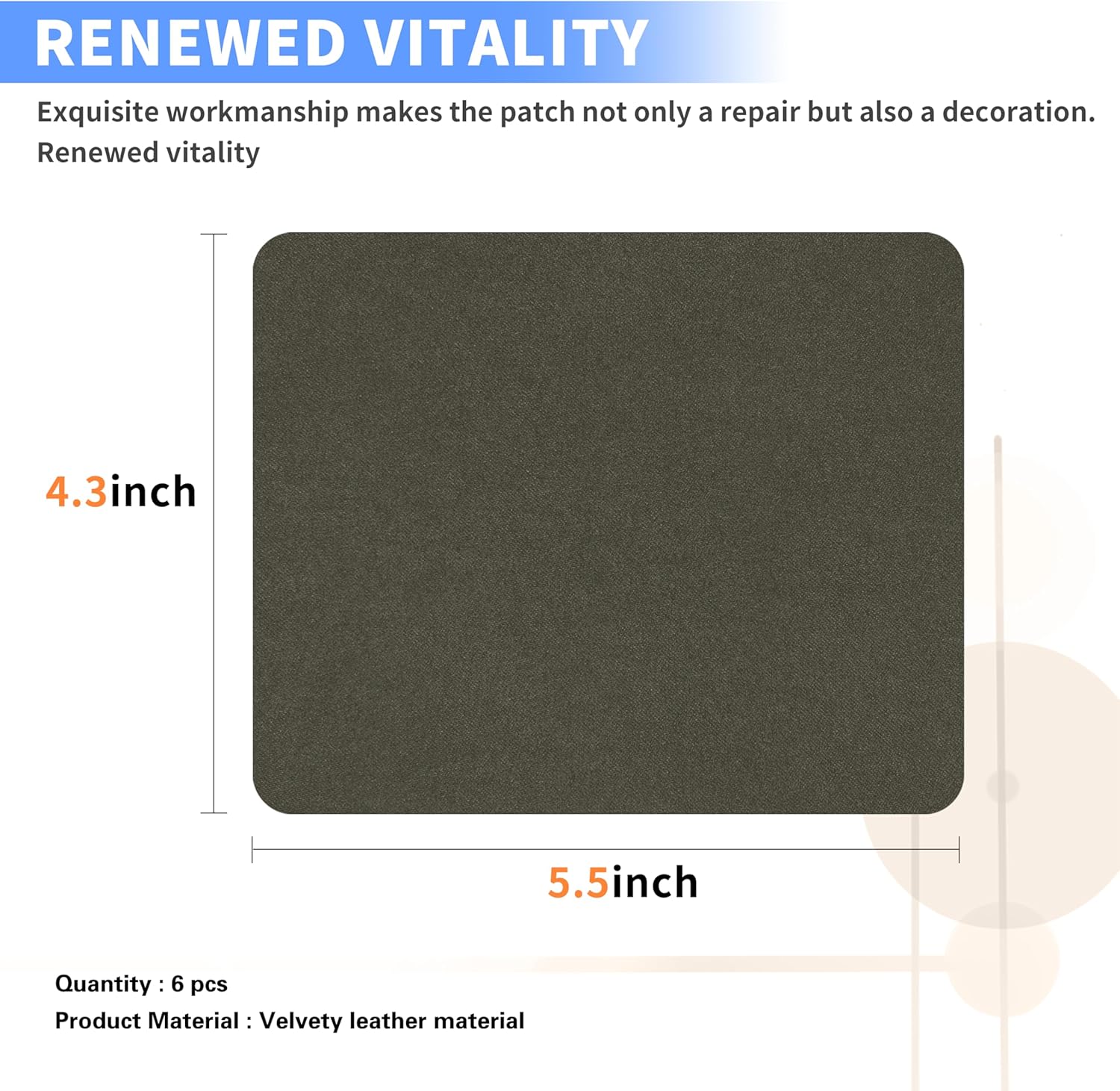 - Package Specification: 6 pcs 4.3"x 5.5" Self-adhesive Sofa Repair Patch.