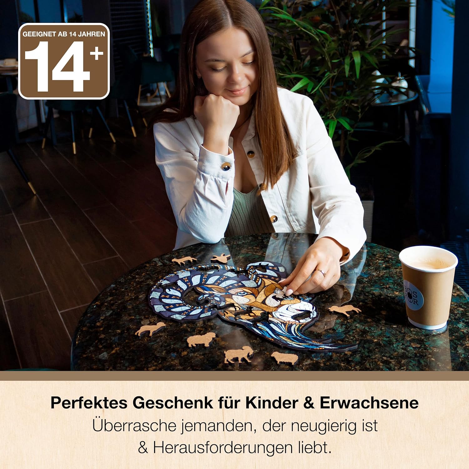 EWA Home Décor – Lion Medium 100 Pieces – Wooden Jigsaw Puzzle for Adults – Perfect for Artistic Home Decoration and Mindful Relaxation