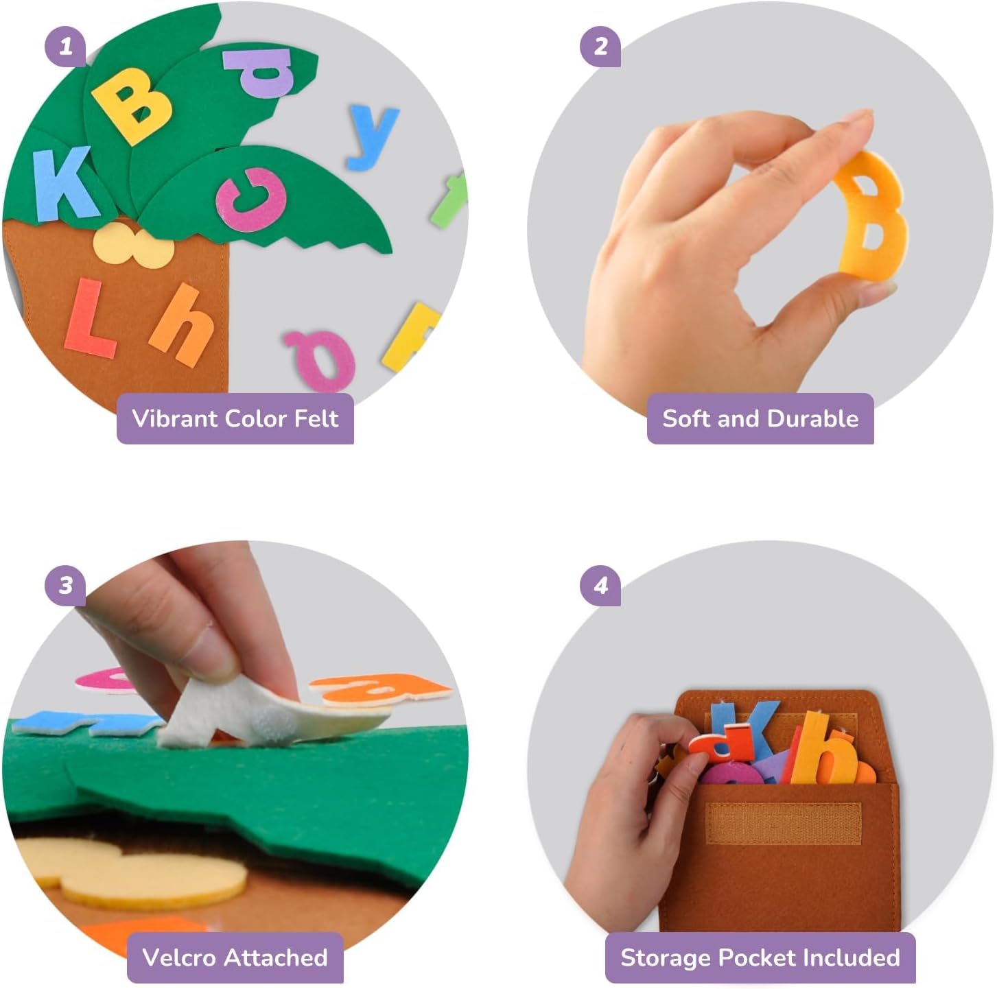 - HANDS ON LEARNING EXPERIENCE- The felt alphabet can easily climb the coconuts tree and stick where ever little hands desire, they can recreate the book, sing the alphabet song or add other alphabet resources