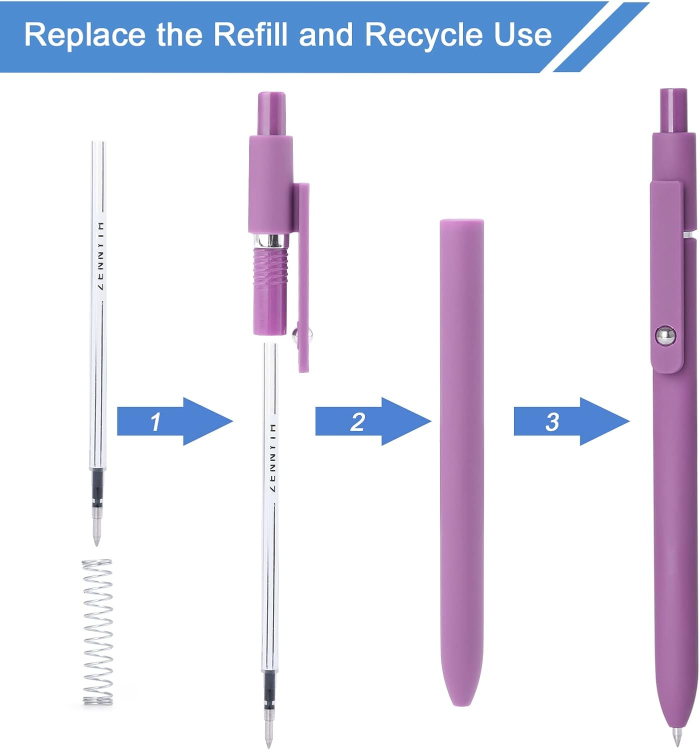 - 0.5mm Quick-Drying Ink Pens:Retractable Rolling Ball Gel Pens with fade-resistant ink, there’s no need to worry about getting ink on your hands or desk, as it won’t fade, bleed, or smudge. Note: After using the gel pen, it is suggested to lay the pen flat or the nib face up. This helps protect the pen tip