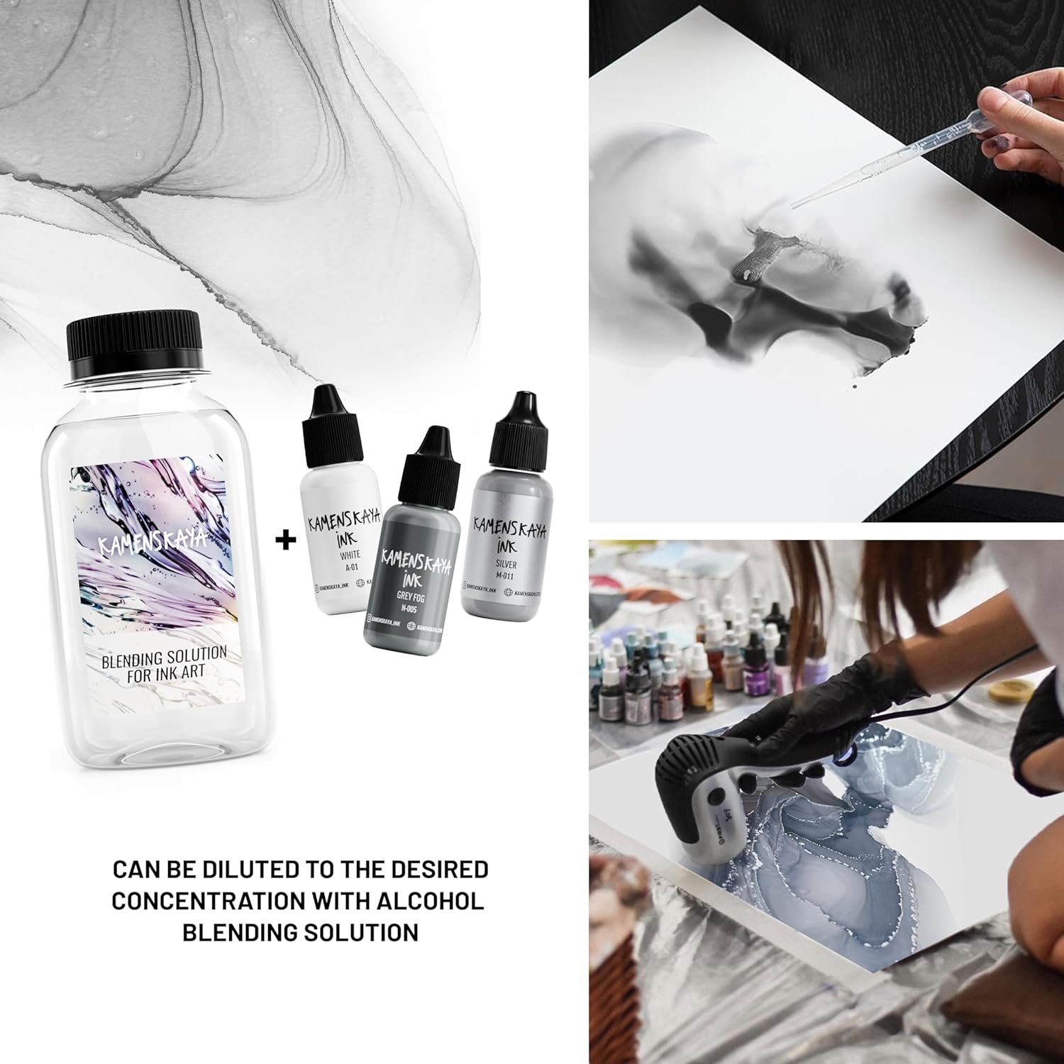 - Mix colors easily with each other and dilute to the desired concentration with KAMENSKAYA special alcohol blending solution