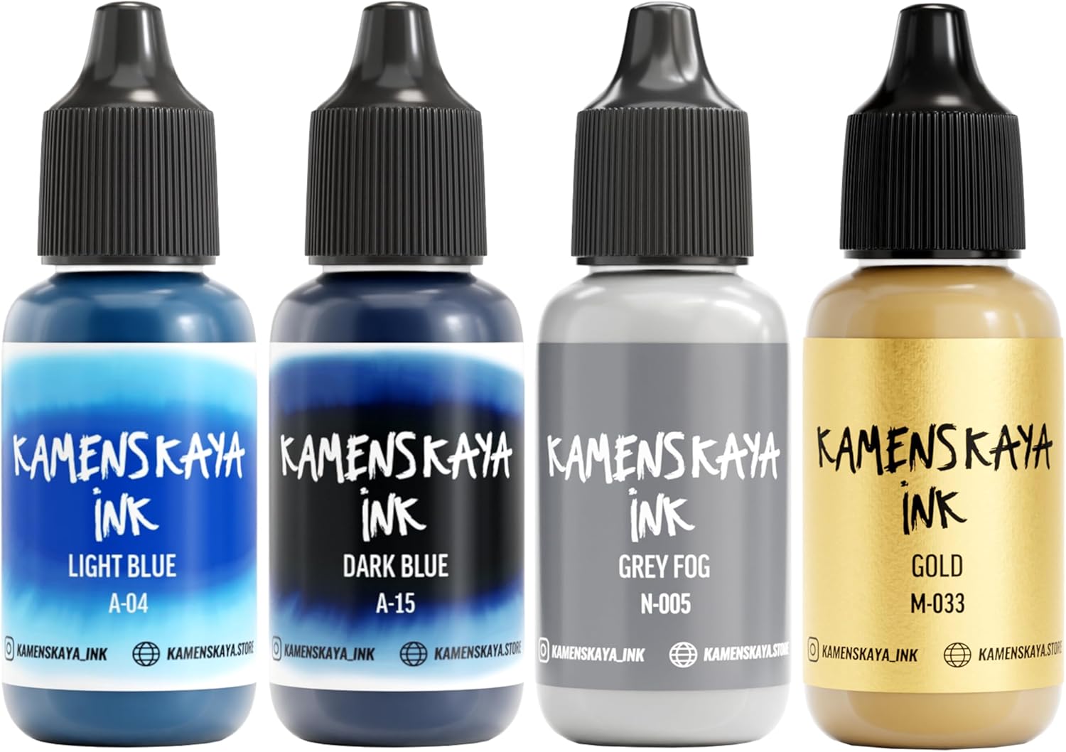 - Set composition: 4 inks 0.51 fl oz (15 ml) each. 2 inks of basic ‘A’ line (light translucent texture, saturated color and a nice satin finish), 1 metallic alcohol ink (natural metallic pigment ink to create golden facets and light cobwebs in your ink art work) and 1 pastel alcohol ink (delicate pastel shade with velvety finish based on dye and pigment, where the pigment provides a dense and opaque layer, while the dye is responsible for the color)