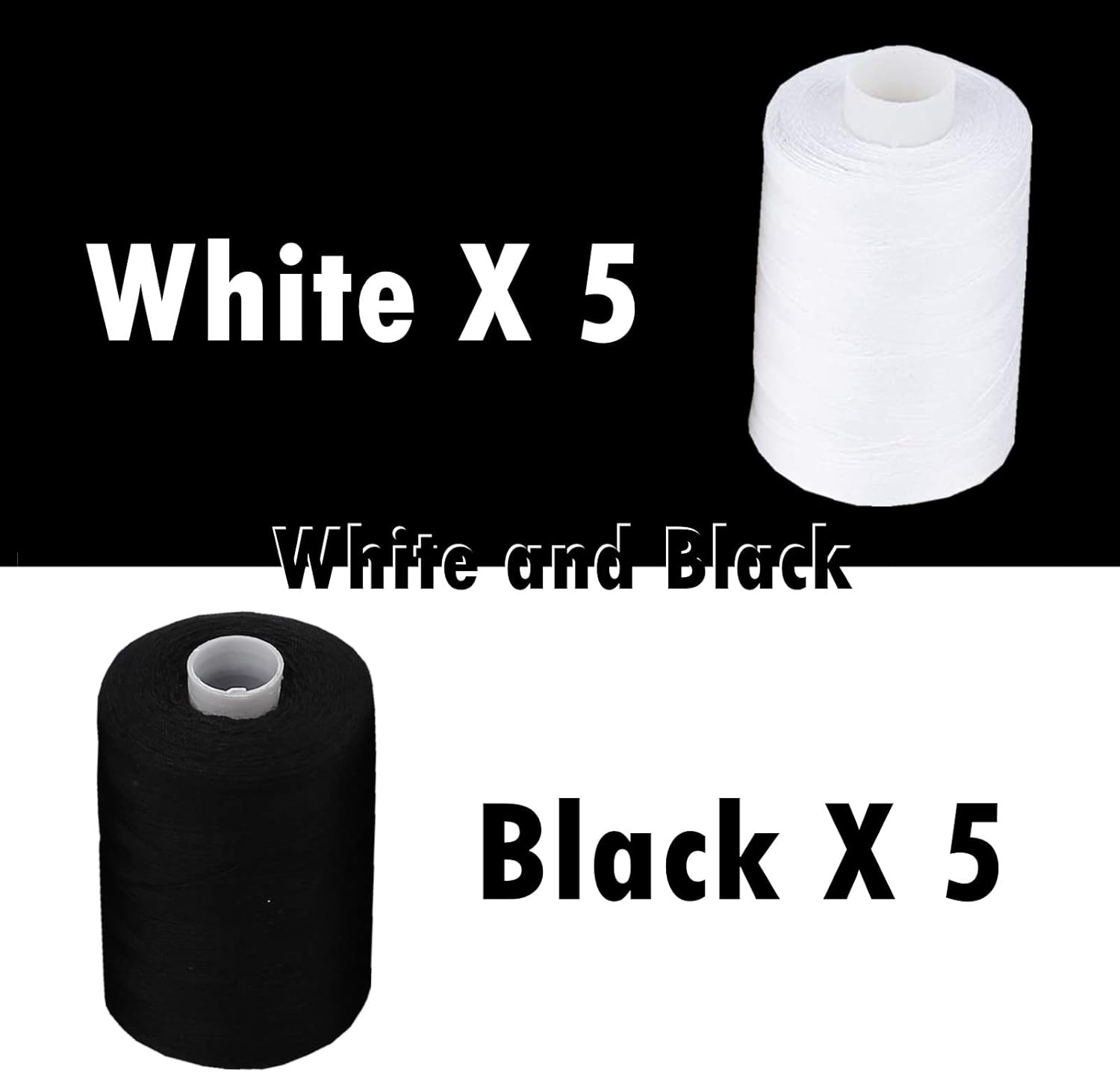 Simthread All Purpose Sewing Thread, 10 Spool (5 White+ 5 Black) 1000 Yards Each Bobbin Polyester Thread for Sewing, Handy Polyester Sewing Threads for Sewing Machine - (White and Black Series)