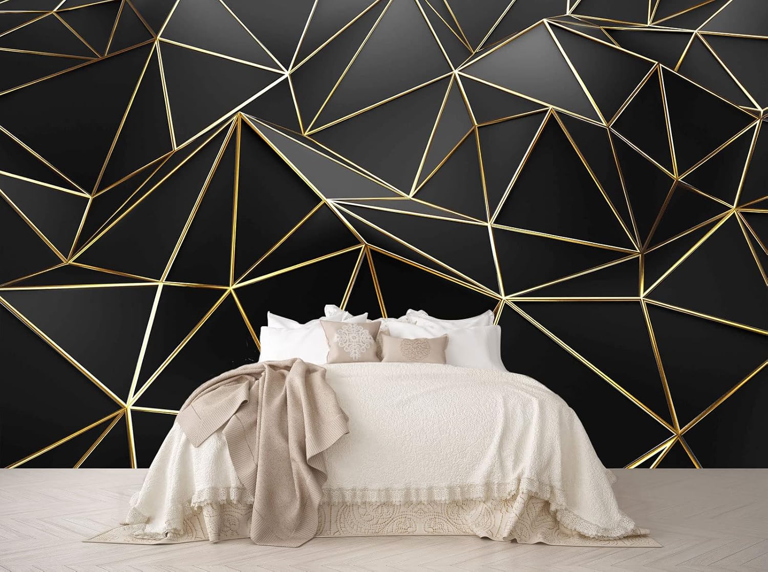 Black and Gold Wallpaper 3D Abstract Geometric Wall Mural for Bedroom Living Room TV Background Wall(Not Peel and Stick)