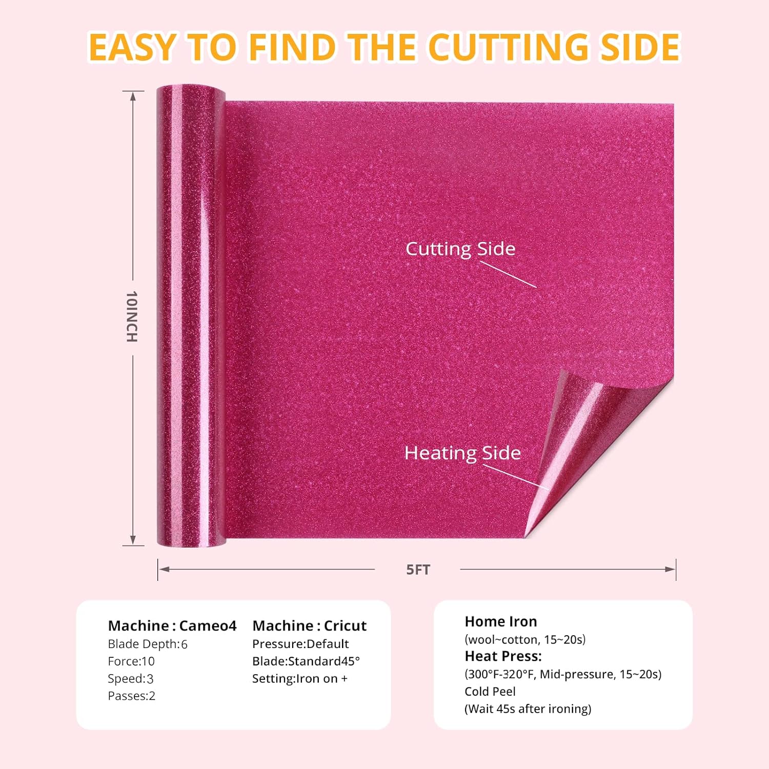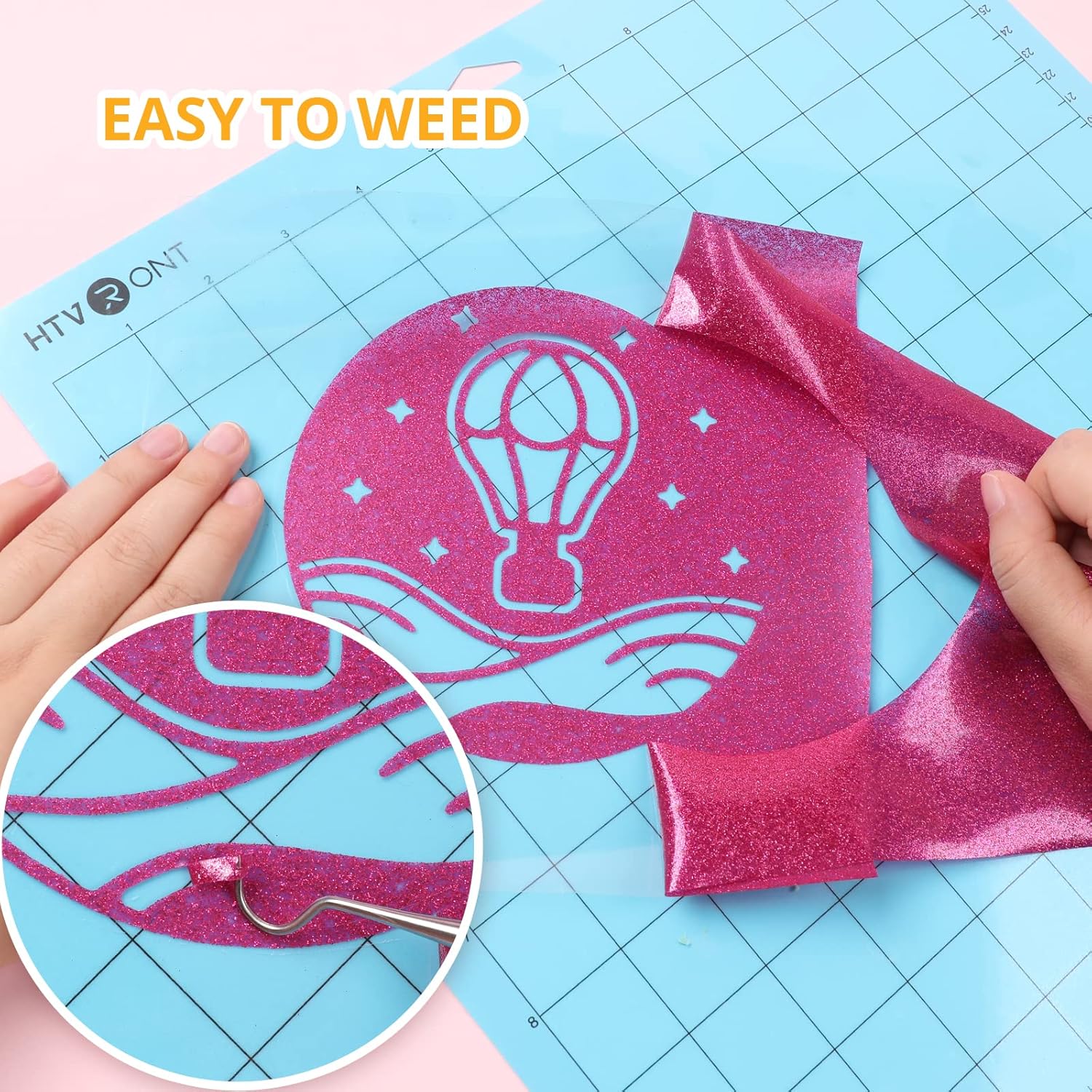 - 【Easy to Cut & Weed & Transfer】Our HTVRONT glitter htv is thicker and smooth. With its good cutting application characteristics, you can get your designs to perfection without wasting excess glitter heat transfer vinyl. At the same time, our glitter iron on vinyl is very sensitive to temperature and pressure, just follow the instructions and you can easily transfer the vinyl to the fabric.