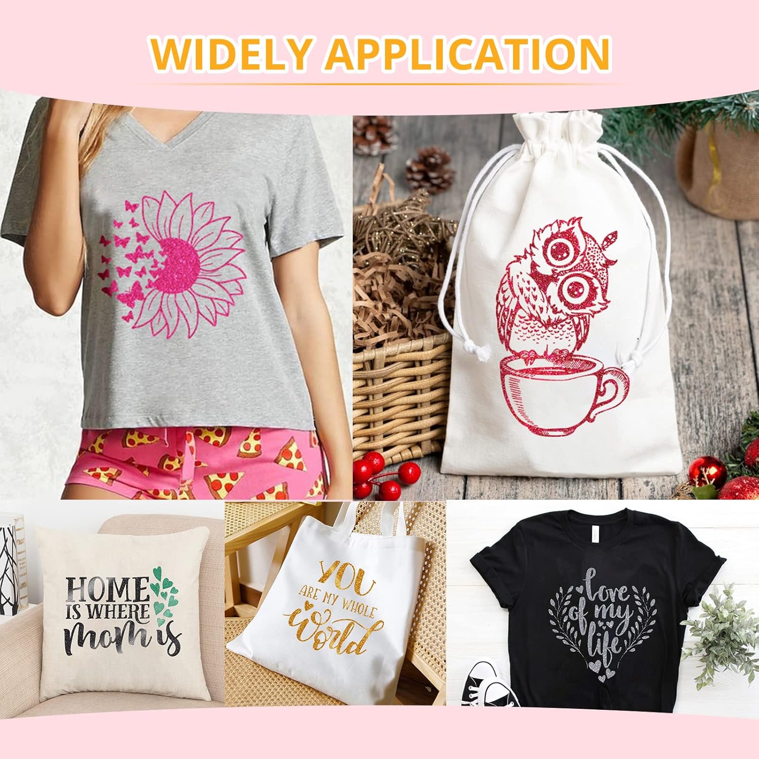 - 【Use Widely & Safely】HTVRONT glitter htv vinyl can be used in many applications including shirts, hats, shoes, and bags. And our rose red glitter htv rolls are SGS certified, so they can keep your family and kids safe and stylish. So, let's customize a gift for your family, kids or friends with this rose red glitter heat transfer vinyl roll!