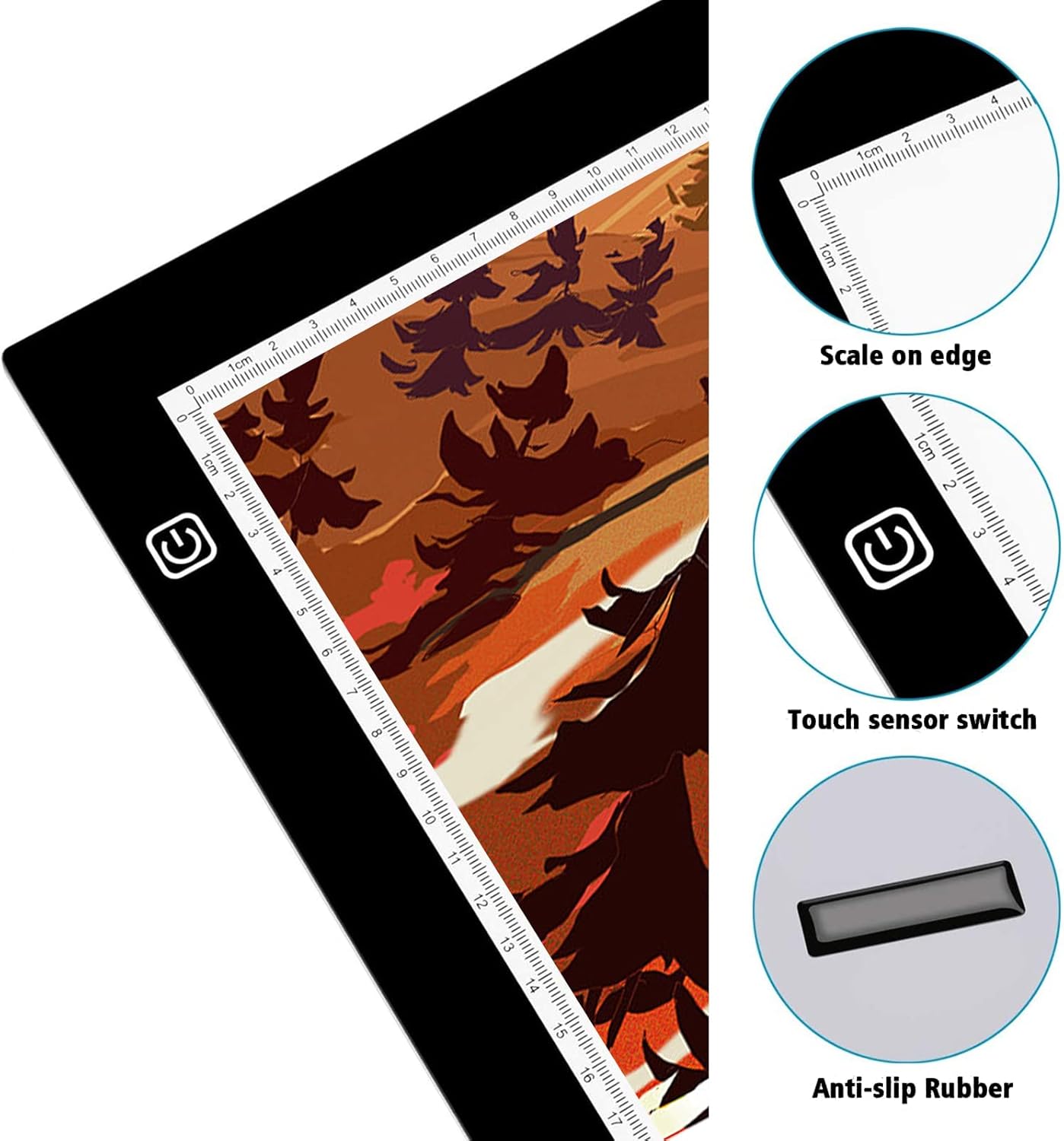 - 【 Super Bright & NO DOTS, NO SHADOW 】The diamond painting light board A2 Built-in dual light bars, rated power 15W, brightness up to 7500 LUX, can easily write through 900g thickness of paper. Because of the selection of advanced light guide materials, the product is lit without dots and shadows, so it is suitable for almost all lighting scenes. The LED Light Box supplies super bright flicker-free LED lamps last up to 50,000 hours.
