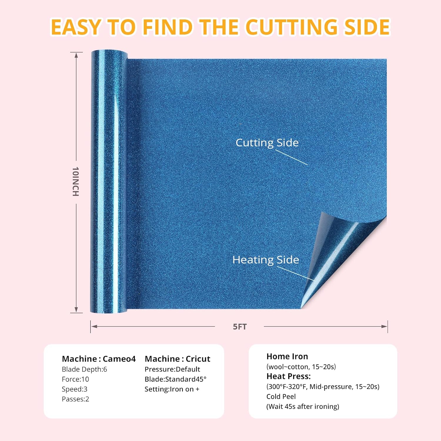 - 【Easy to Cut & Weed & Transfer】Our HTVRONT glitter htv is thicker and smooth. With its good cutting application characteristics, you can get your designs to perfection without wasting excess glitter heat transfer vinyl. At the same time, our glitter iron on vinyl is very sensitive to temperature and pressure, just follow the instructions and you can easily transfer the vinyl to the fabric.