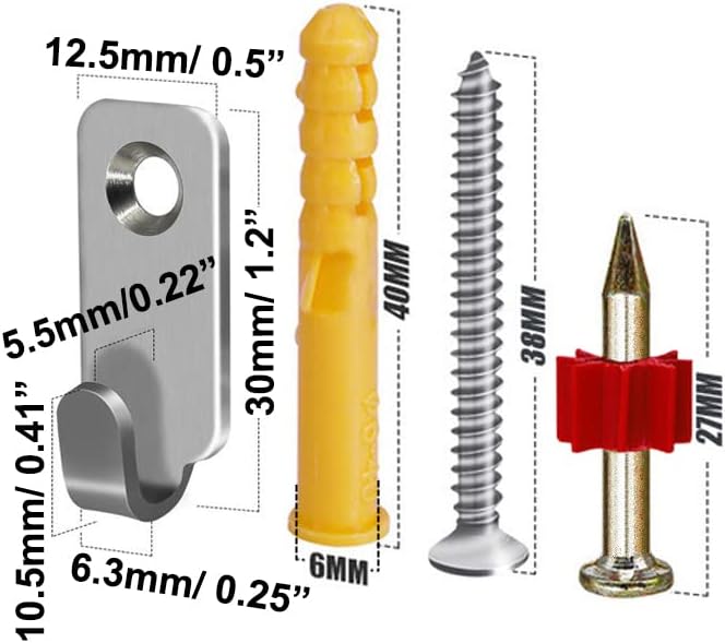 - 20pcs Wall mounted mini J-Hook, mounting nails, inserts, self tapping screws are included.