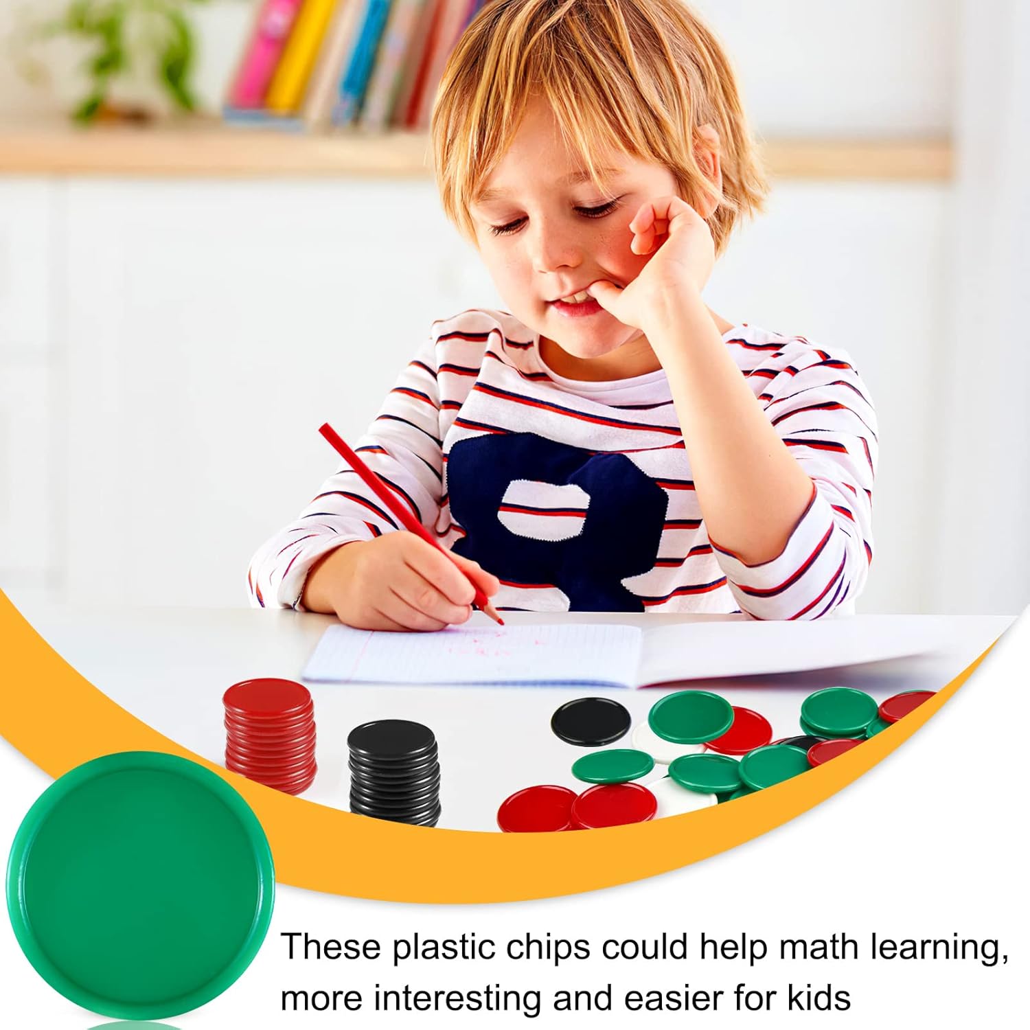 Coopay 1 1/2 Inches Plastic Poker Chips Learning Counters Disks Bingo Chip Counting Discs Markers for Math Practice and Poker Card Game Tokens, Teaching Rewards, 200 Pieces (Red, Green, White, Black)
