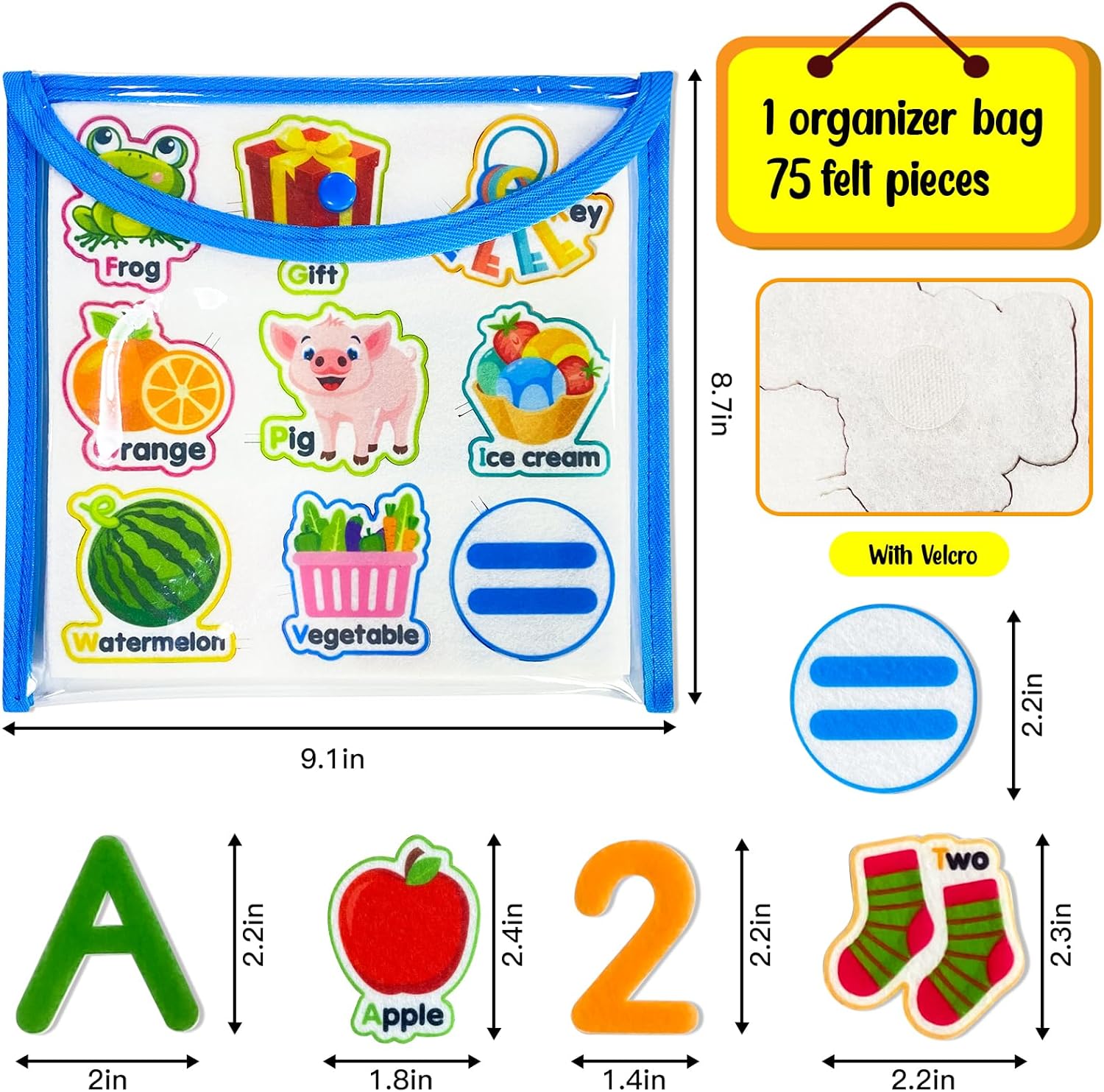 Felt Learning Letters and Numbers - 75 Felt Board Pieces for Flannel Board, Alphabet ABC for Toddlers, Kindergarten, Preschool
