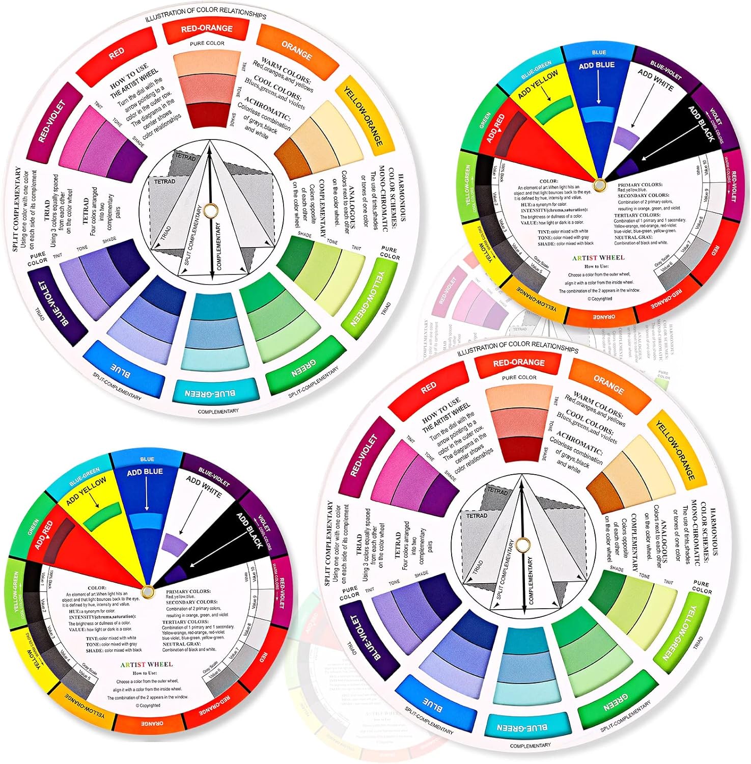 - Package Include: you will receive 4 pieces of color wheels in 2 sizes, measuring about 5.5 inches and 9 inches in diameter, the artist wheels help show which colors are complimentary, and how they go (or do not go) together, ideal for learning how to color