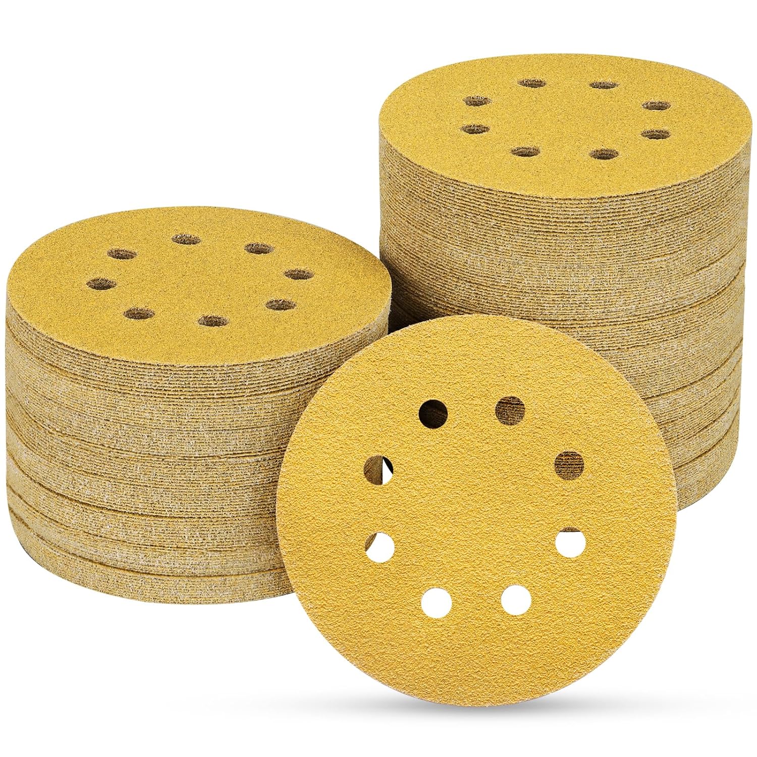 100PCS 5 Inch 8 Hole Sanding Discs 80 Grit,Gold Round Hook and Loop Sandpaper for Random Orbital Sander