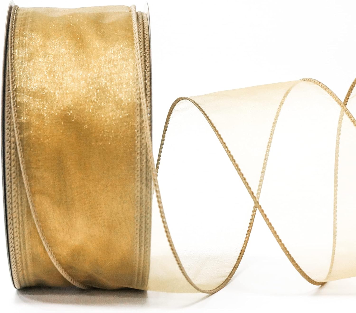 - GREAT WORKMANSHIP - Our Sheer Organza Wired Ribbon 2.5" has a density weave so you won’t find any loose edges. You won’t find any fraying ends or loose strings anywhere, making our Sheer Organza Wired Ribbon 2.5" Tan (Gold) color perfect for high-end and professional DIY works and Crafts.