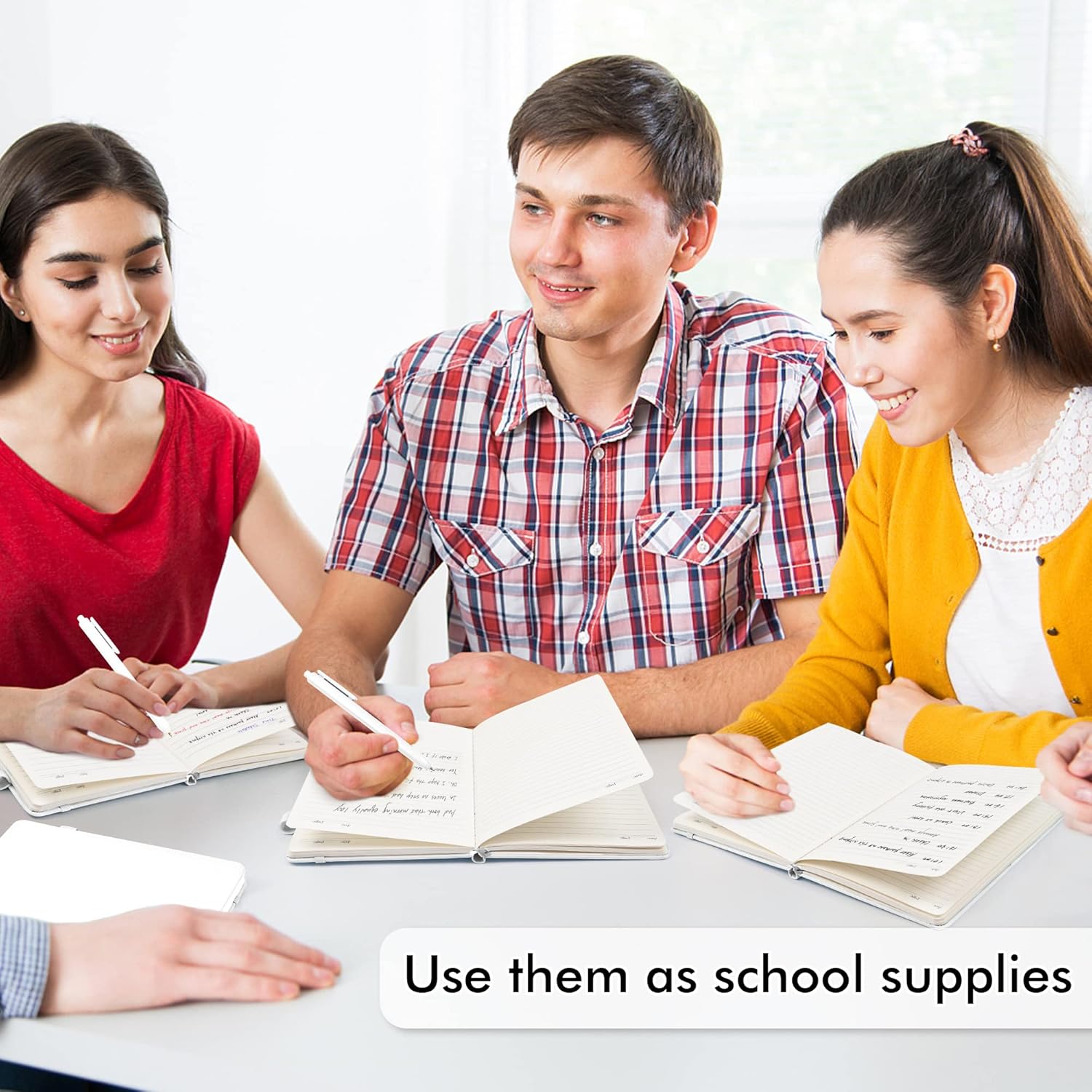 • Feela 5 Pack Classic Ruled Notebooks contains 5 white ruled sturdy cover notebooks and 5 Black Retractable Pens. Each of the notebooks measures 8.3” x 5.1”, which is perfect to carry and easily held by young girls and boys. These black cute pens are customized to be placed in the pen holder, which is pretty convenient.