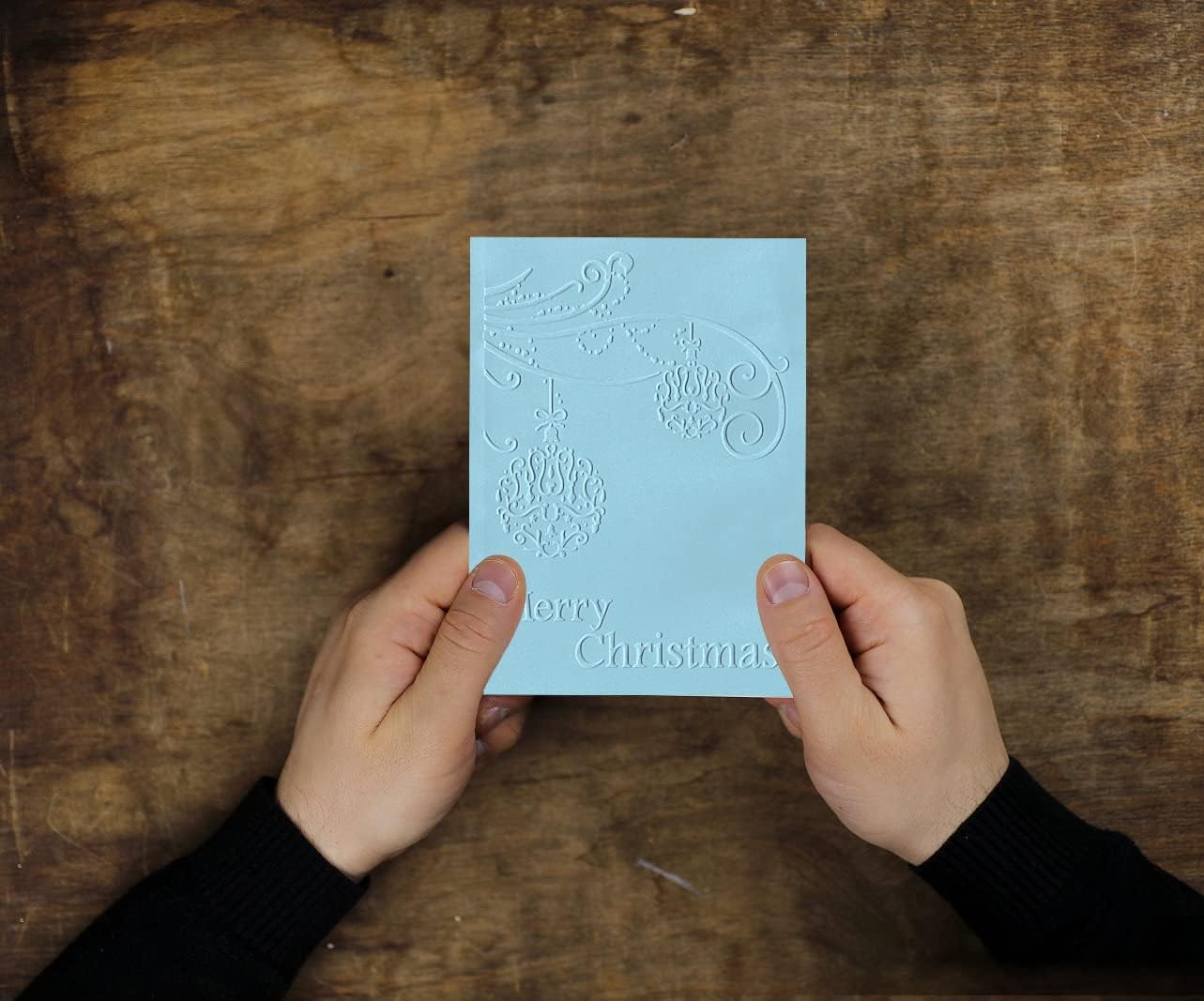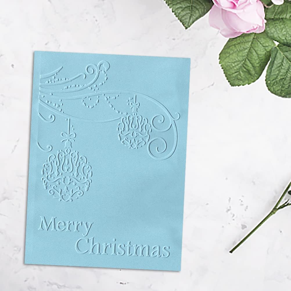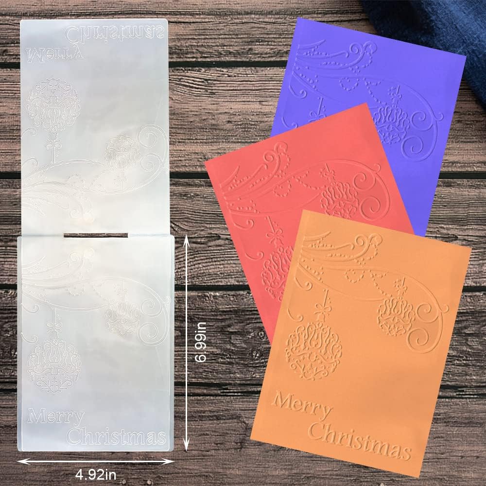 - 【Size and Design】 Christmas Background Embossing Folder is 7.08" L x 4.92" W. Design with Rich Christmas Words Ball Pattern.
