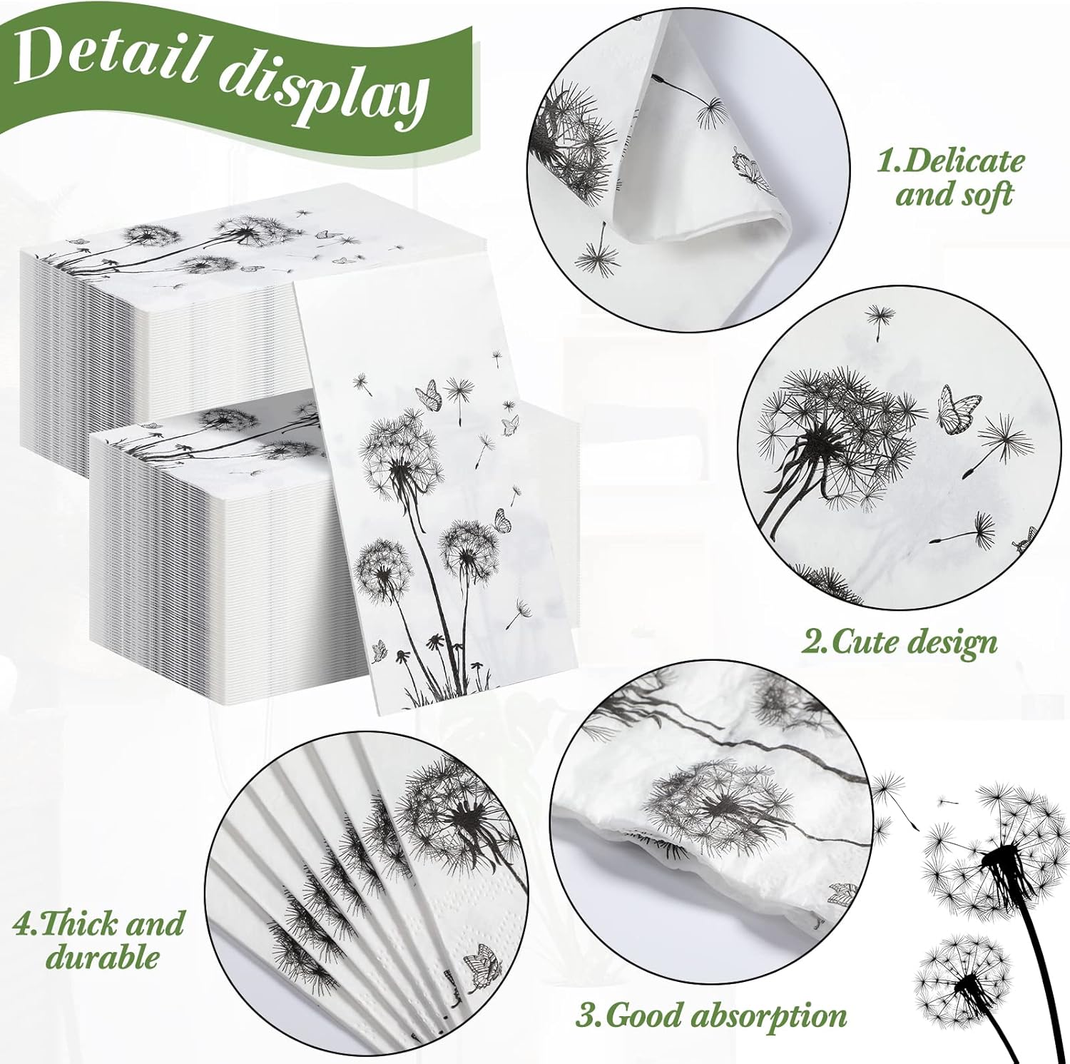 - Widely Applicable: our decorative dandelion napkin is practical and elegant, they can dry your hand and make the surface clean and dry; Unfold the tissue, it can act as decorations at the bathroom sink, or can be given as a gift, all of these will attract your guests' attention