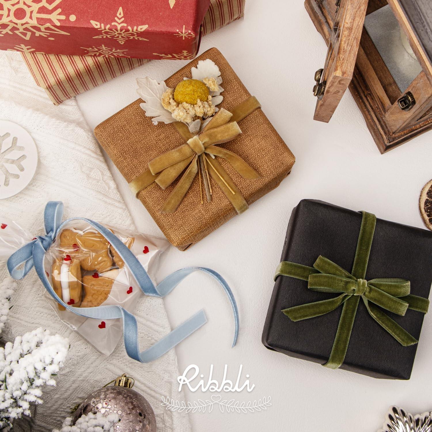 Ribbli Moss Green Velvet Ribbon,Polyester Velvet 3/8 Inches Continuous10-Yard Spool,Christmas Ribbon for Gift Wrapping,Floral Bouquets, Home Decor