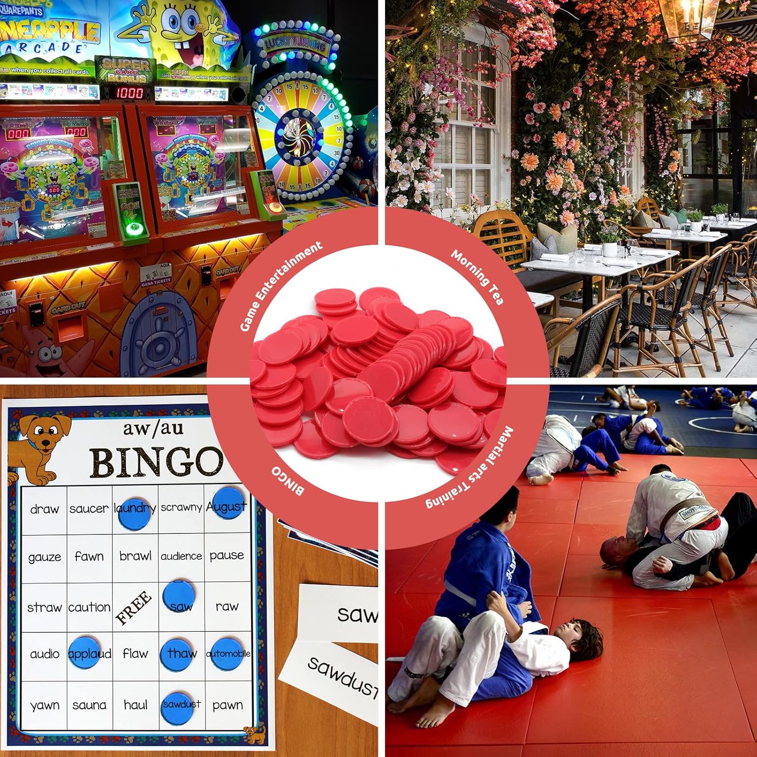 Set of 100 Opaque Plastic Learning Counters Mini Poker Chips Game Tokens with Storage Box (Red, 1 Inch)