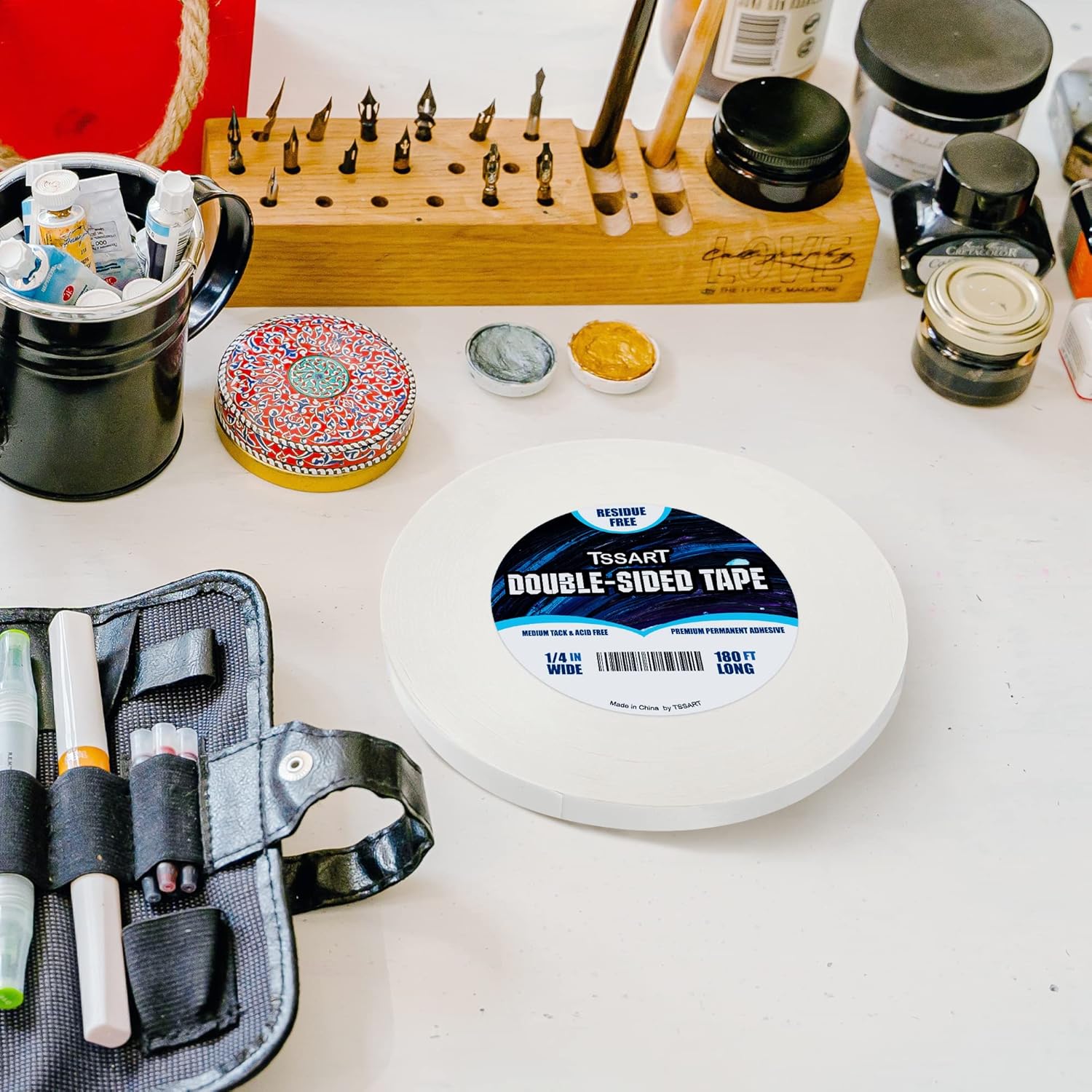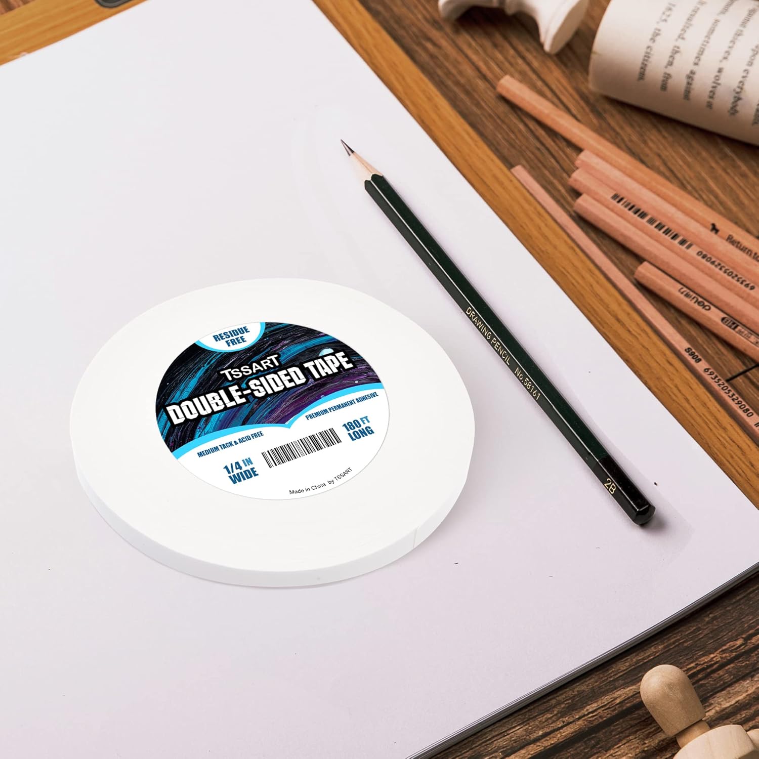 Ultra-Thin Permanent Double-Sided Tape - Double Sided Adhesive Sticky Tape for Arts, Crafts, Photography, Scrapbooking, Tear-by-Hand - Acid Free 1/4 Inch Wide 180FT Long