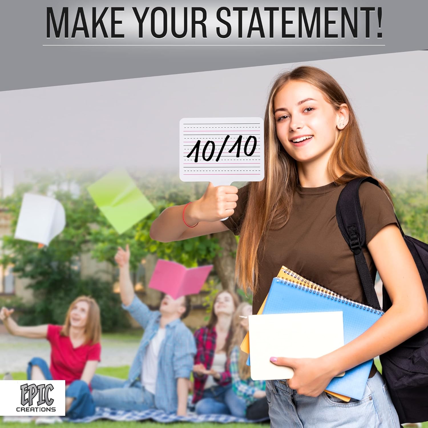 Epic Creations Dry Erase Paddles - 24 Pack 8.11 x 6.14 Inches - Double Sided Handheld Whiteboard - Dry Erase Signs - Hand Held White Board - Auction Paddles - White Board Paddles,Hand Dry Erase Board