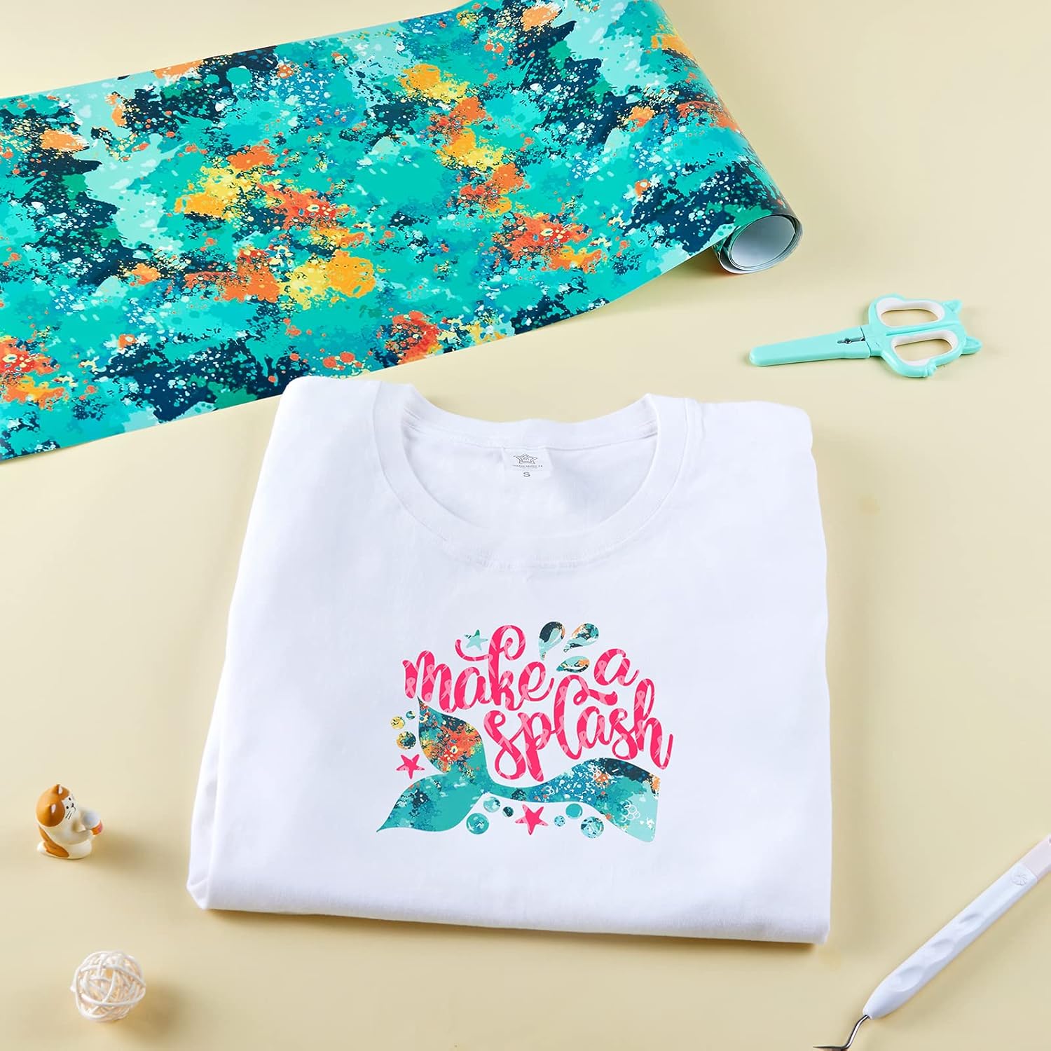 - 【Unique Design & Color】This Splash Heat Transfer Vinyl Roll is a 12 inch x 5ft Roll with Rose Blue Watercolor Ink Patterns,Enough length and Special Design for You to Create Your DIY Crafts