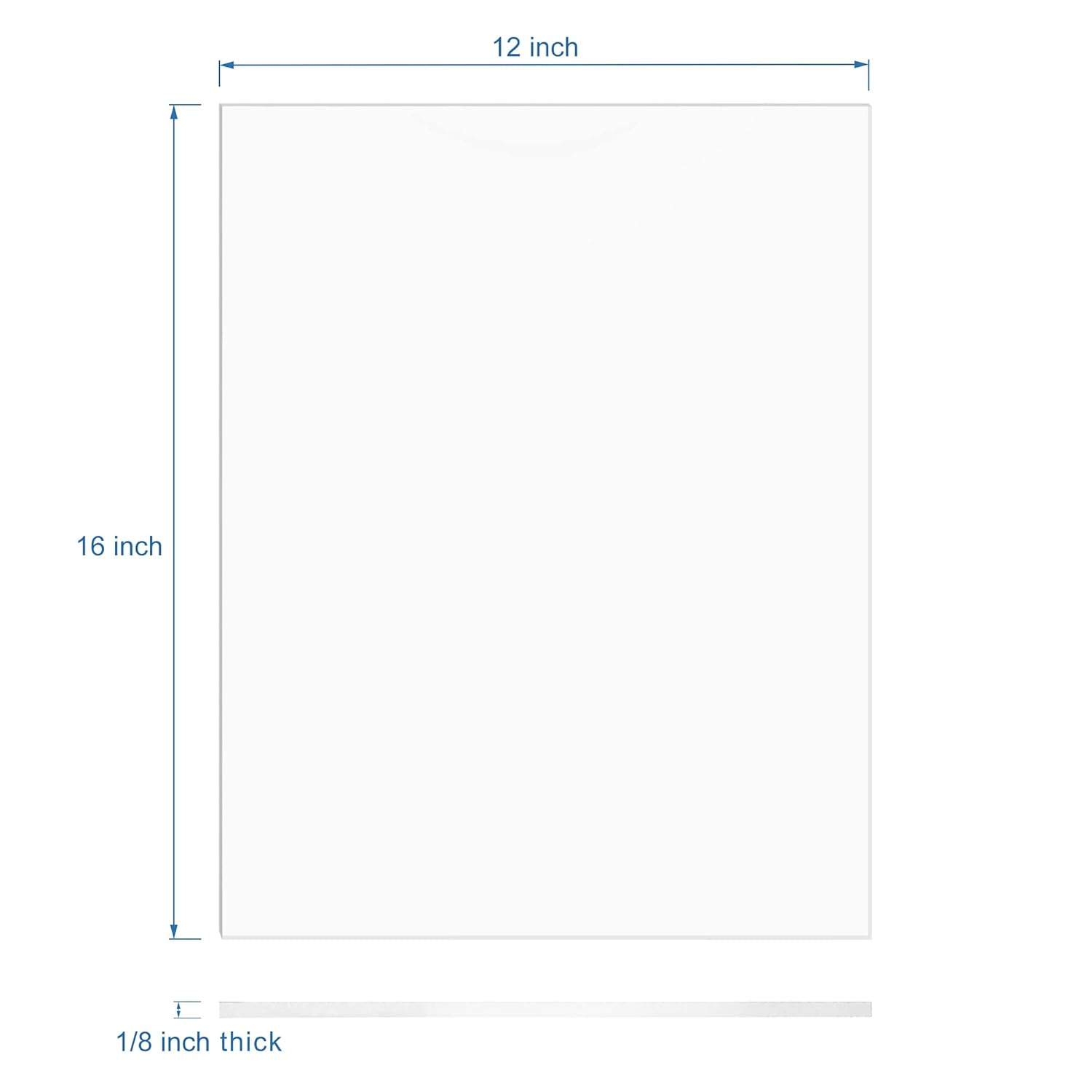 - It measures 12 x 16 inches with 1/8 inch thick (0.118" / 3mm nominal). Please remove the protective paper on both sides of the acrylic piece before use.