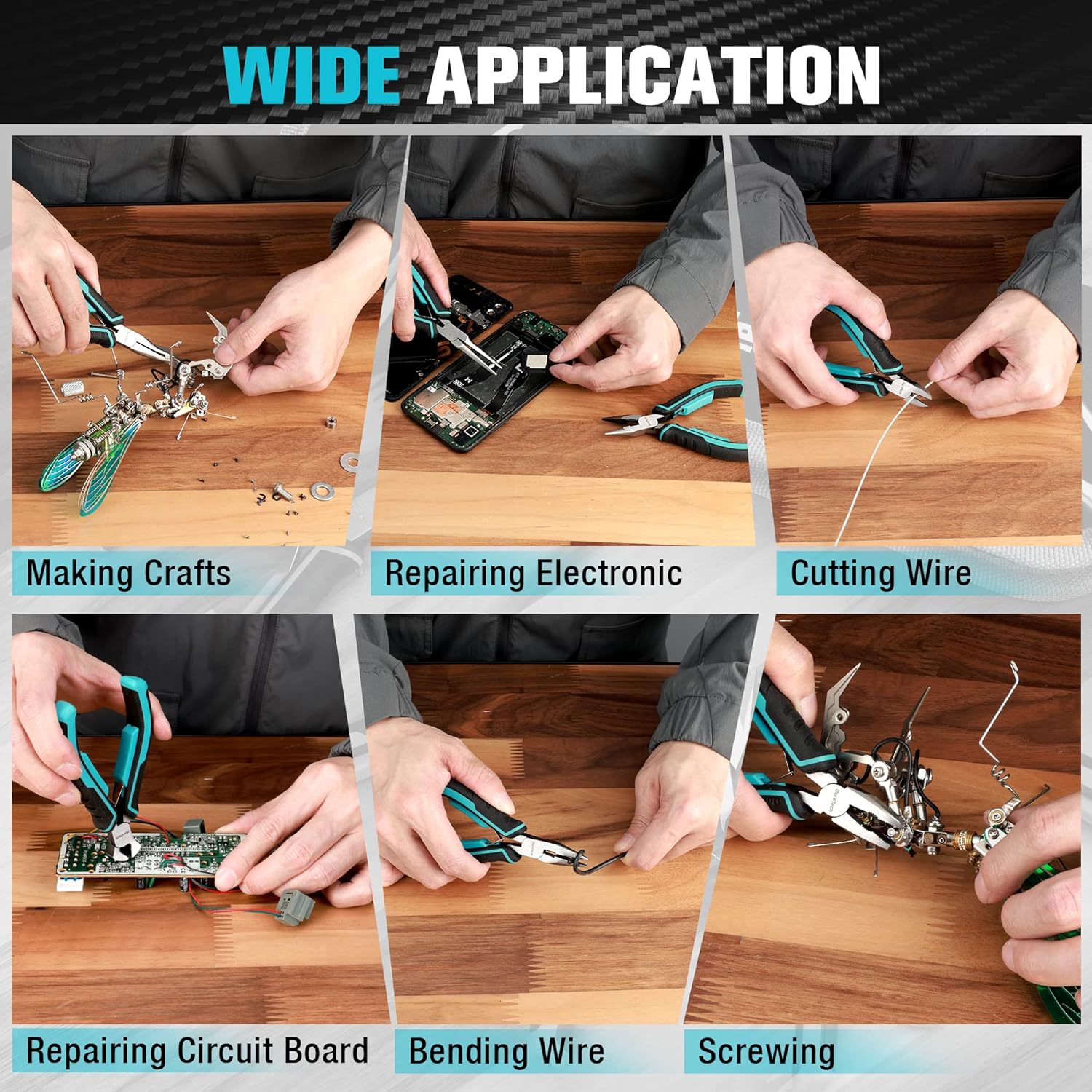 - WIDE APPLICATION: This pliers set is suitable for beginners and professionals and can be used for most handicrafts like jewelry making, and small electronic projects. It is perfect for electronic repair, factory processing, machine maintenance, and home appliance repair.