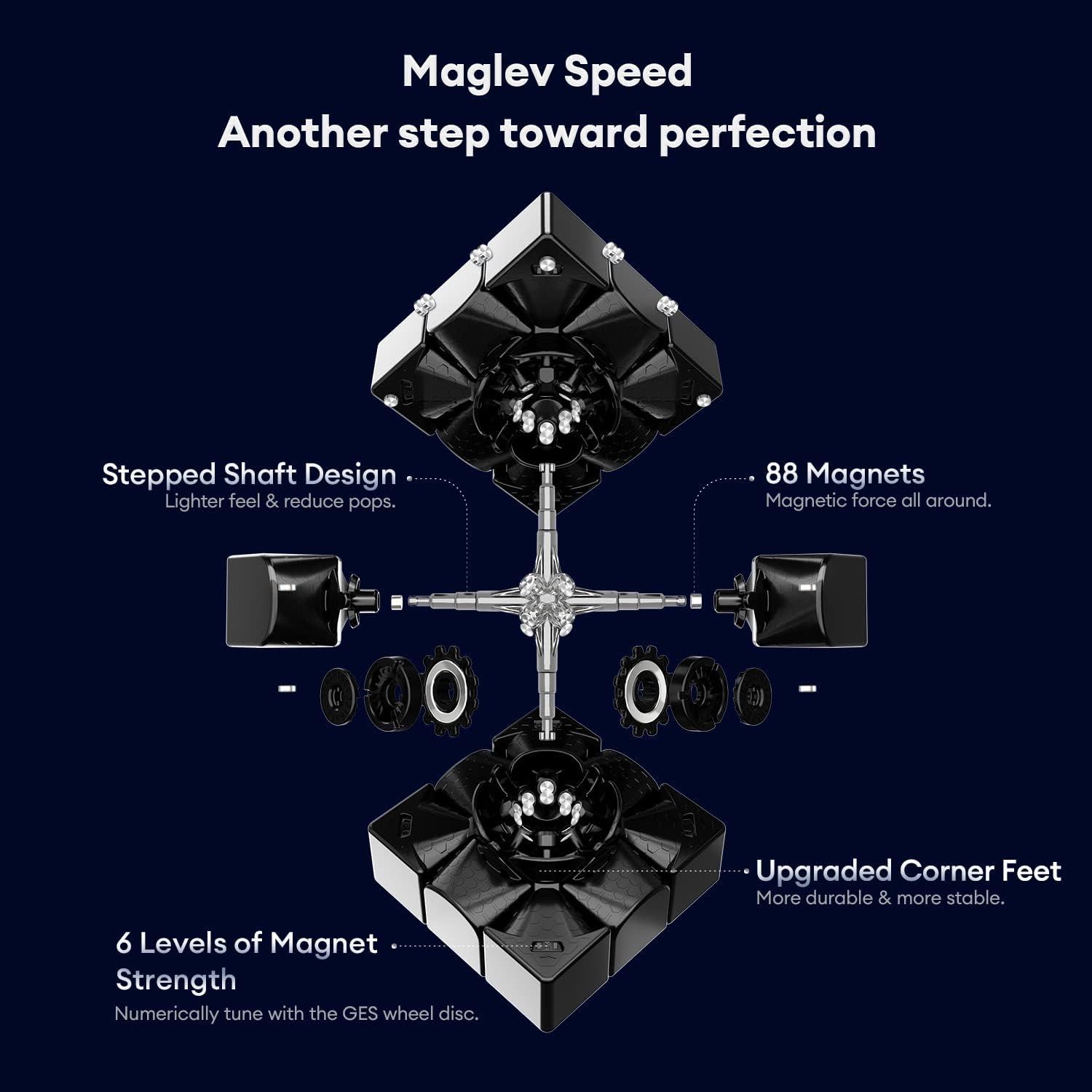 - ENHANCED CORE POSITIONING 3.0 - We added magnets to each of the 8 edge pieces that are repulsive to the core, increasing the maglev area of the cube and making it faster. The interior of GAN13 Maglev is loaded with 88 magnets for a more even burst of magnetic force that gives you the most stable hand feeling.