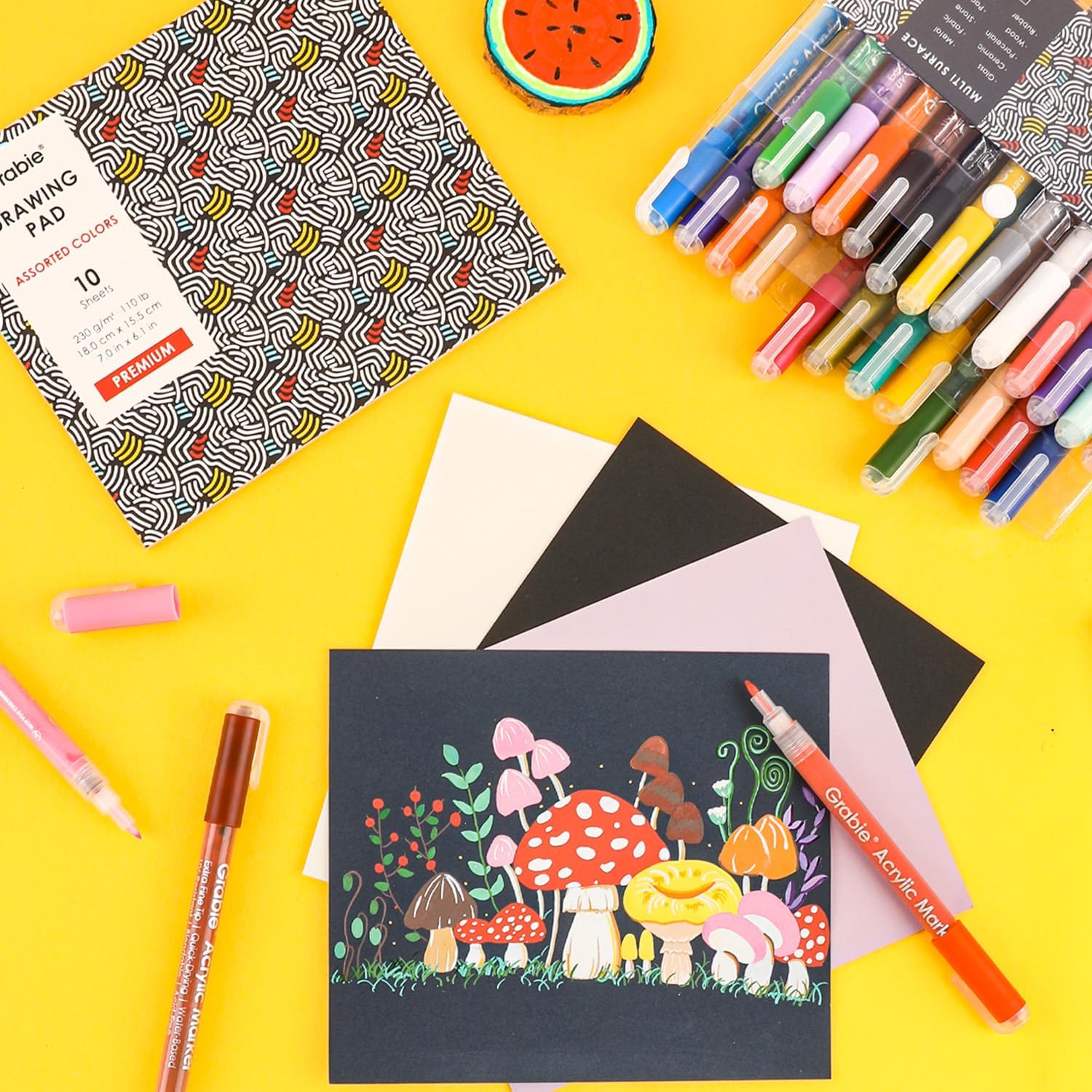 Grabie Acrylic Paint Pens Markers, 28 Colors, 0.7 mm, Extra Fine Tip Drawing Markers, Premium Paint Pens for Painting on Various Surface, Art Supplies, Set of 28