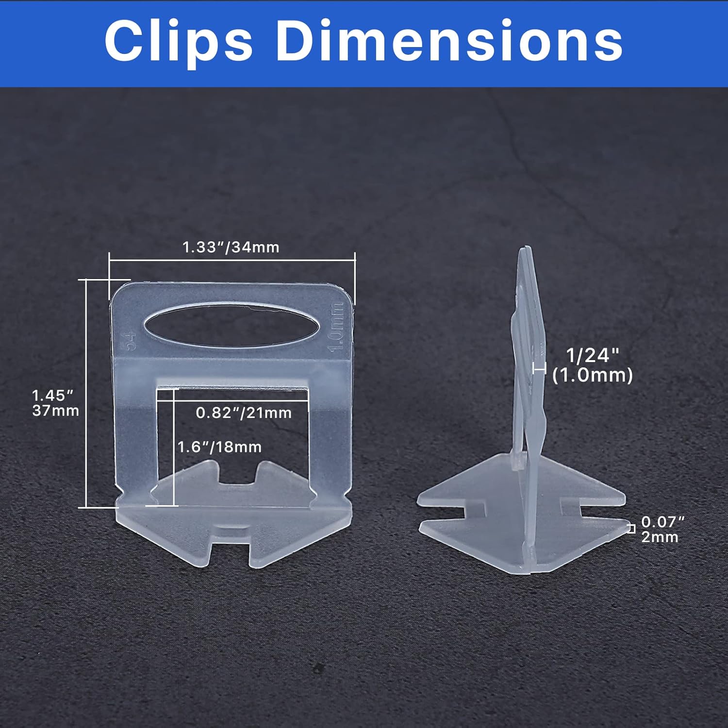 - 【1000pcs Tile Clips】: You will get 1000 pieces tile leveling spacer clips . (wedges and plier are NOT included). Suitable for 1/8" (3mm) to 1/2"(12mm) thickness of the tile, allows for a 1/32"(1.0mm) minimum grout joint.