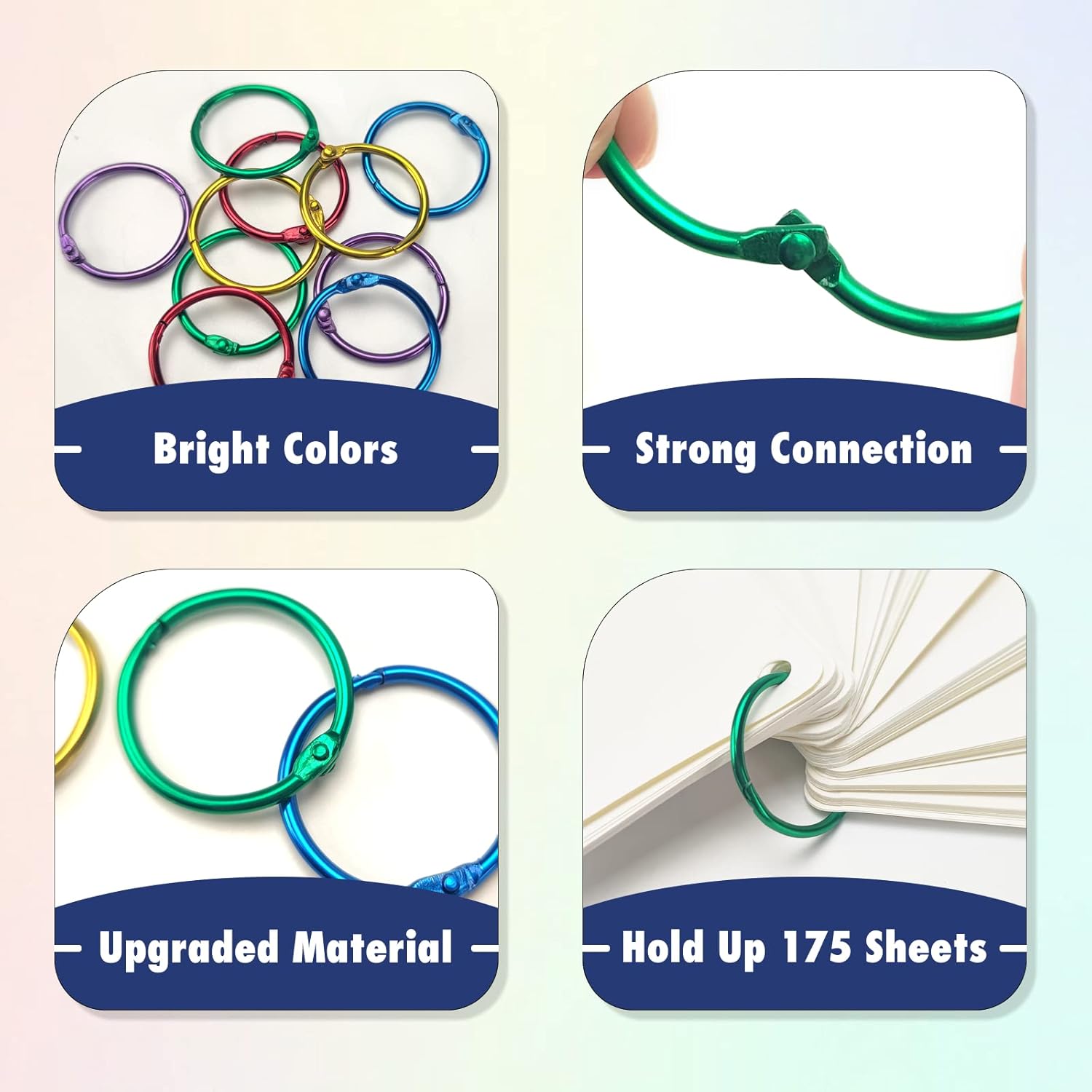 - 【Standard Size】The inner diameter of Book rings is 1 inch, can hold up to 175 sheets of papers. You can use it to string some different materials such as key rings, photos, files, scrapbook
