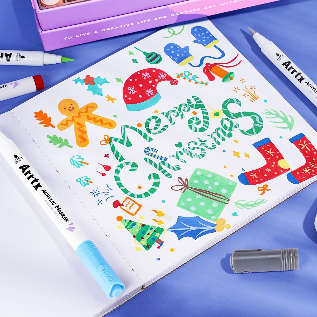 - Work well on Multi Surfaces: Arrtx drawing markers set provides water-based smooth ink and excellent coverage for a variety of surfaces, works for rock painting, ceramic, glass, wood, fabric, stone, Easter eggs, easter decoration, metal, plastic, canvas, Christmas ornament, Halloween pumpkin painting, calligraphy, scrapbook, brush lettering, Christmas card, birthday gifts, greeting card, or any DIY crafts projects and more. The creative possibilities are endless!