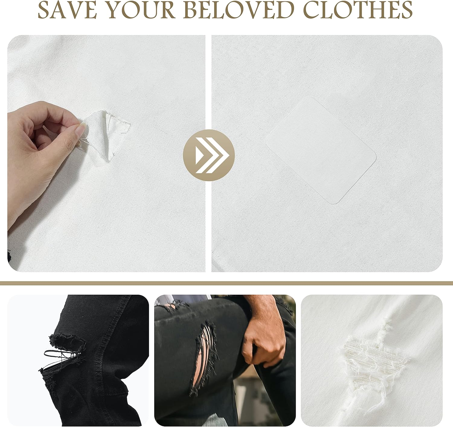 - [Simple and Fast Repairing Power]: No need to sew, no need to buy additional glue, just press and iron the patch for 60s, you will complete the repair in less than 3 minutes, perfectly solve the problem of wear and tear on the clothes, and rejuvenate your beloved clothes, let you wear more comfortably, and no longer feel embarrassed and troubled by holes in your clothes and pants!