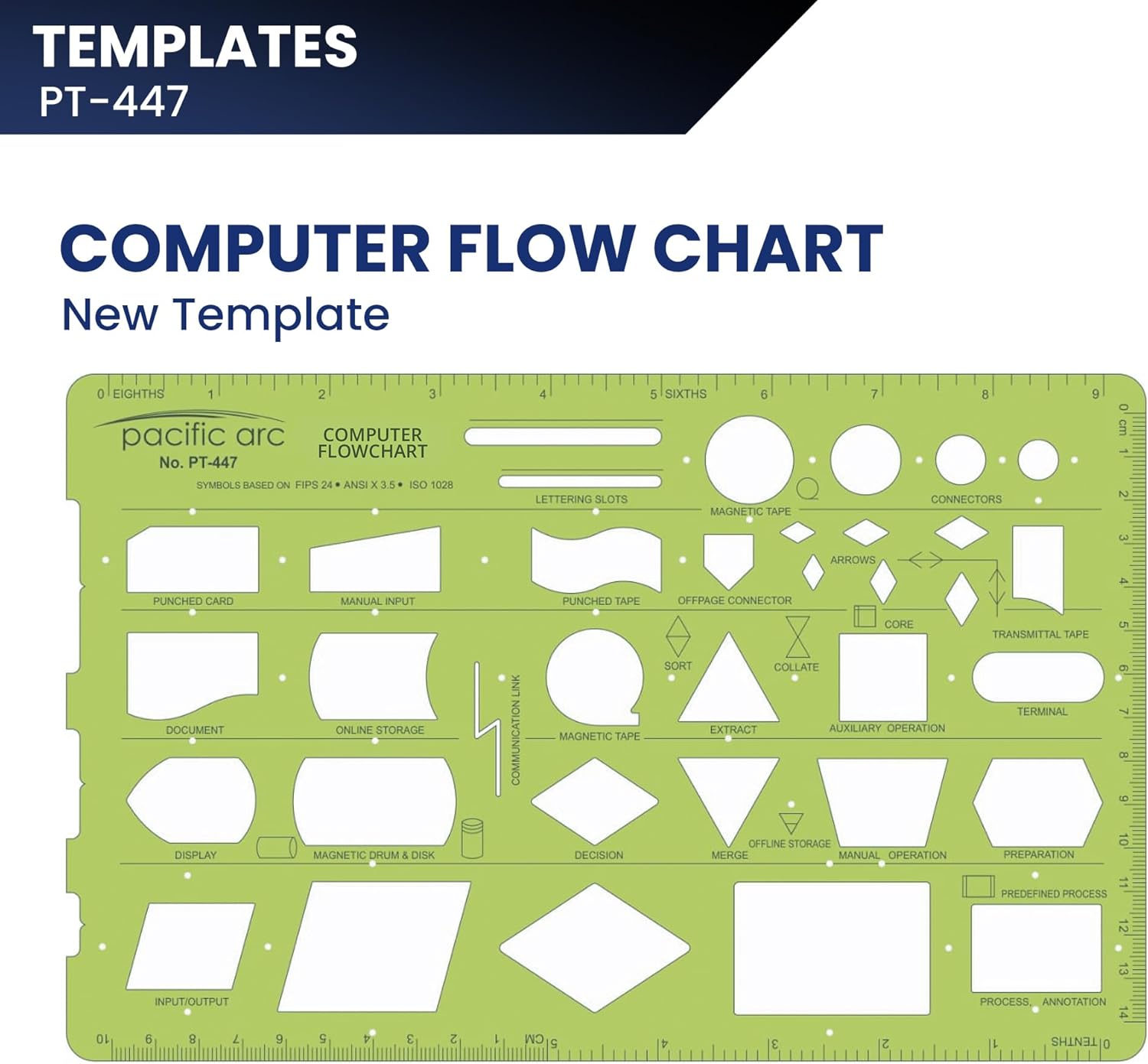 Pacific Arc - Computer Flow Chart Template - Drawing Aid Stencil for Professional or School Work - Size 6.188 x 9.75 inches.