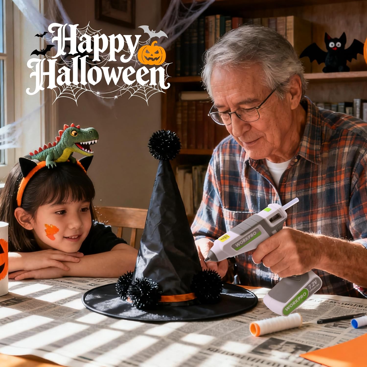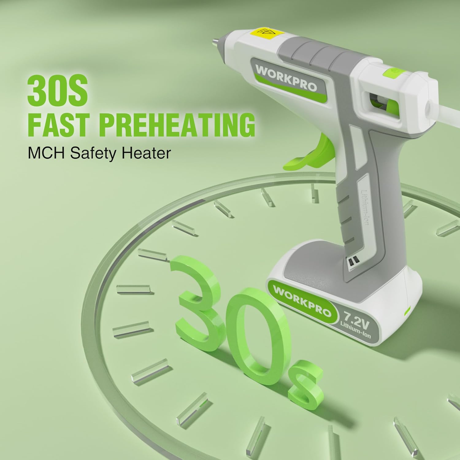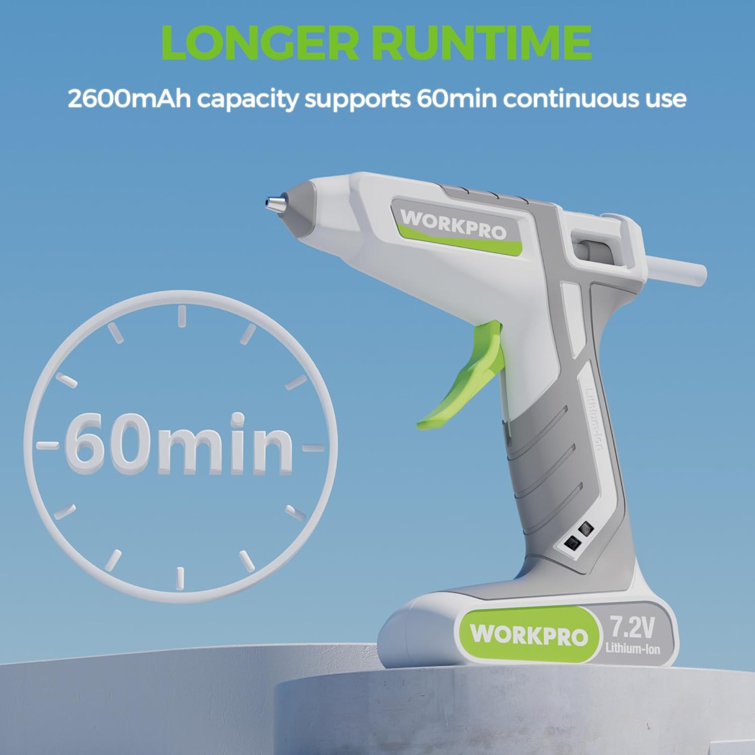 WORKPRO 7.2V Cordless Hot Melt Glue Gun, Rechargeable Fast Preheating Glue Gun Kit with 20 Pc Premium Mini Glue Stick, Automatic-Power-Off for Art, Craft, Decoration, USB Type-C Cable Included