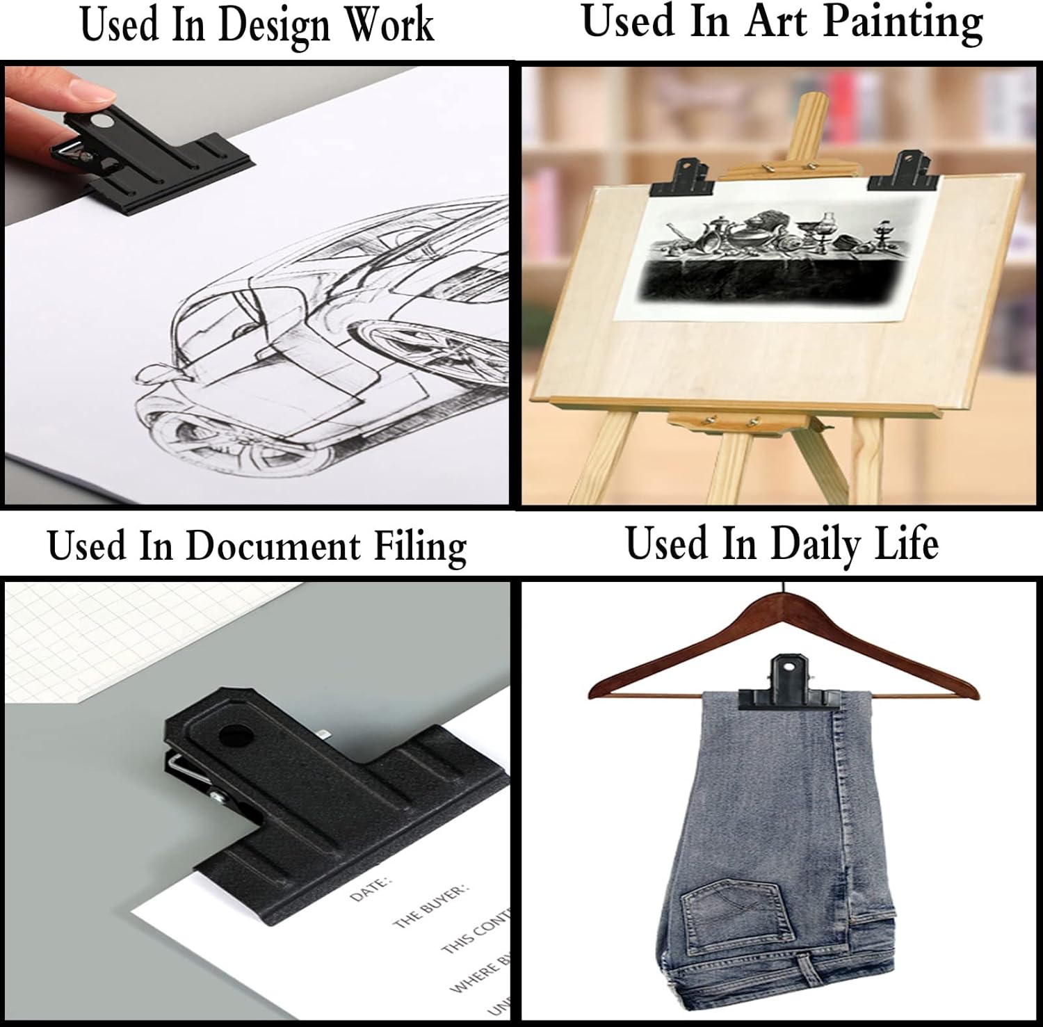 - 【Multiuse 4.7 Inch Metal Clips】These binder clips extra large can be used as bag clips for food, clipboard clips, clips for paperwork, bulletin board clips, metal clips for crafts, office clips large, clips for hanging pictures, drawing board clips, wall hanging clips and much more.