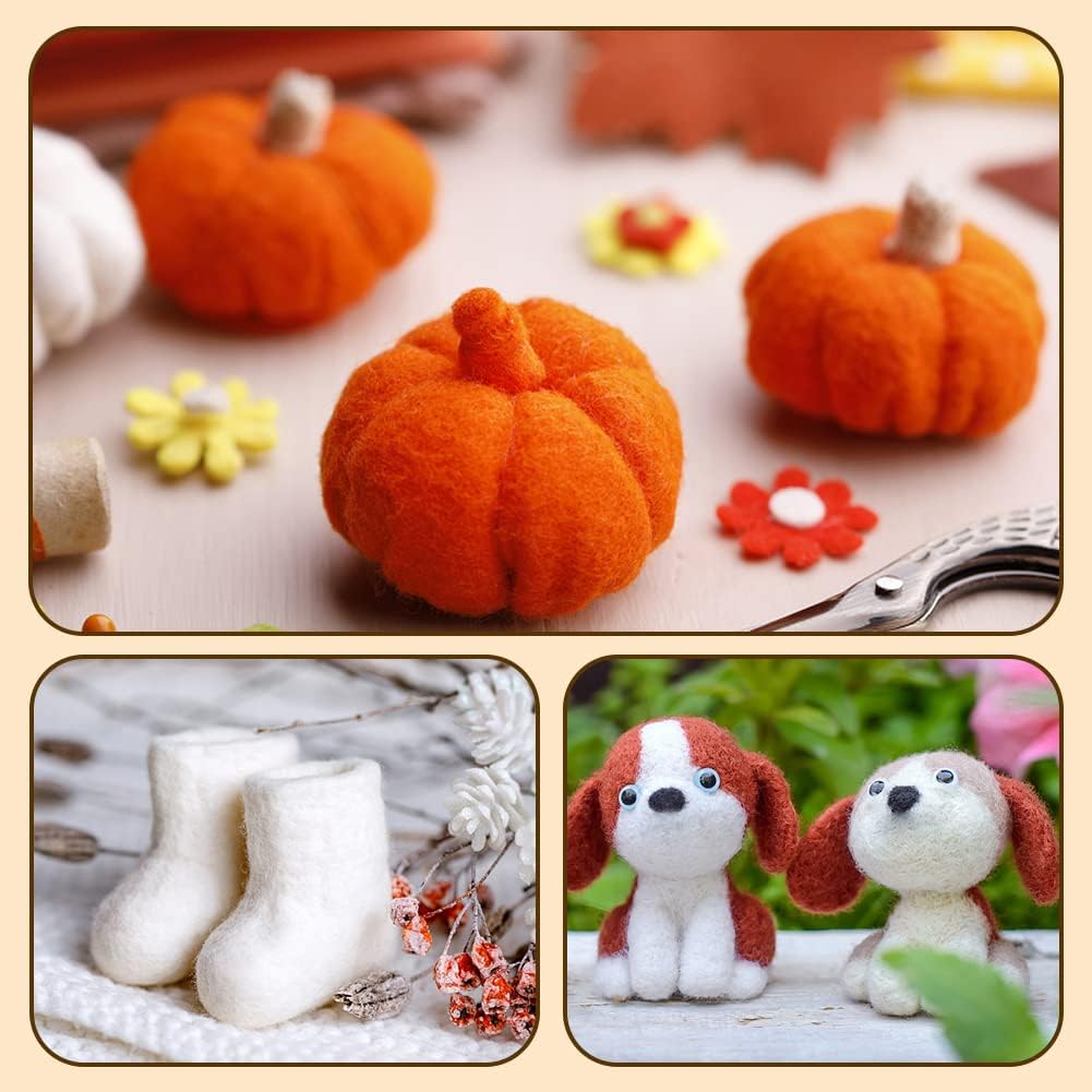 - Complete Wool Felting Tools: includes 3 different sizes of needles, 36 gauge, 38 gauge, 40 gauge felting needles 30 of each size. 3 x needle handle, 1 pair of finger cots, 1 x Scissors, 1 x cleaning cloths, 6*6in pure wool felt, 3 x needle bottles, awl x 1, can meet your various needs.