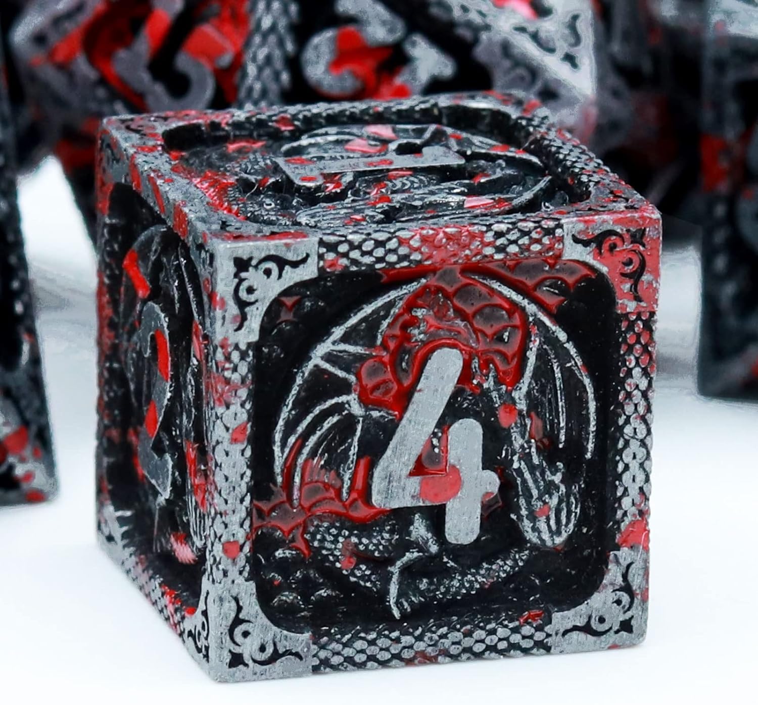 - Haxtec Original Design DND Dice Metal: Innovative Exclusive 7pcs unique dragon metal dice for dnd, cthulhu and other RPGs.